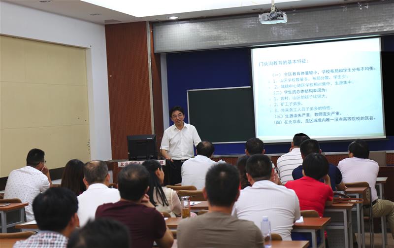 培训班上,北京师范大学教授、博士生导师毛亚庆以《新常态、新教育、新学校》为题作了辅导报告,毛教授强调,育人是教育的根本,提高教育质量,要把促进人的全面发展、实现人的身心和谐发展作为根本标准;北京财贸职业学院副院长(原门头沟区教委主任)李永生做了《提高学校现代化治理水平》的专题报告,向大家重点介绍了头沟区基础教育快速发展的经验;北京师范大学教育学部副教授,硕士生导师鲍传友,从正确理解学校文化、学校文化的要素和结构、如何建设学校文化等三个方面作了《以核心素养为中心的文化建设促学校内涵式发展》的专题讲座;北师大教育培训中心专家委员会秘书长刘晨元,全程参加了《如何做一名合格的校长》的专题研讨。