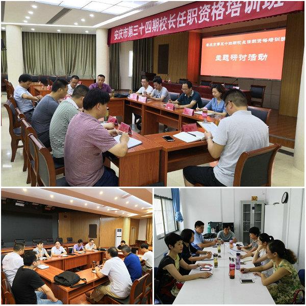 7月20日上午,安庆市第34期校长任职资格培训班按照既定的培训日程,精心组织了主题研讨活动,参训学员就校长角色定位、一个好校长与一所好学校、家校共建与家园共育、校长的责任担当与人文情怀、提高校长领导力与增强教师职业幸福等话题展开交流与探讨。