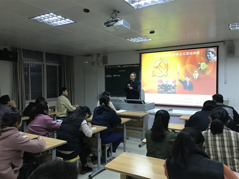 2019年11月14日至16日,华体网页版页面登录党委书记、校长吴雪恩接连三天走上讲台,亲自为开放教育学员讲授《习近平新时代中国特色社会主义思想》。