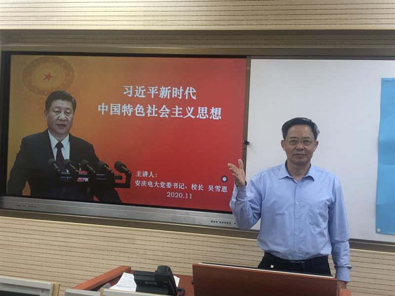 11月23日晚,校党委书记、校长吴雪恩走进网络直播教室,为学生在线讲授《习近平新时代中国特色社会主义思想》。