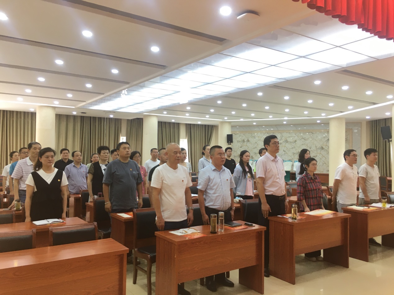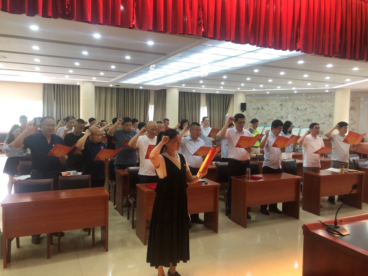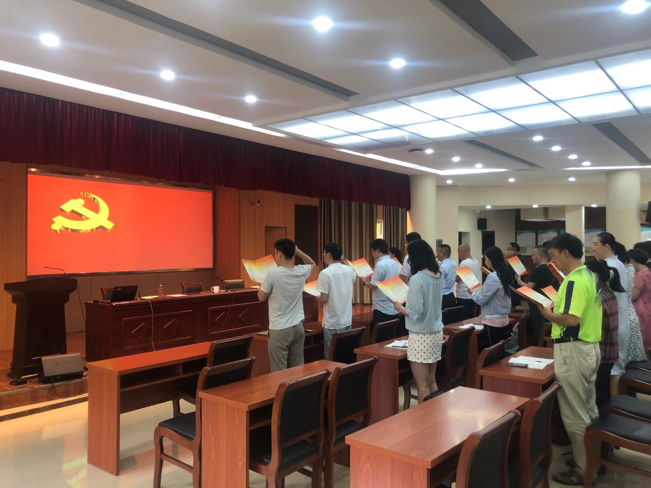 会议第三项议程,全体党员集体过“政治生日”。与会党员一起面向党旗庄严宣誓,表达自己对党的忠诚信仰和随时准备为党和人民牺牲一切、永不叛党的坚定决心。