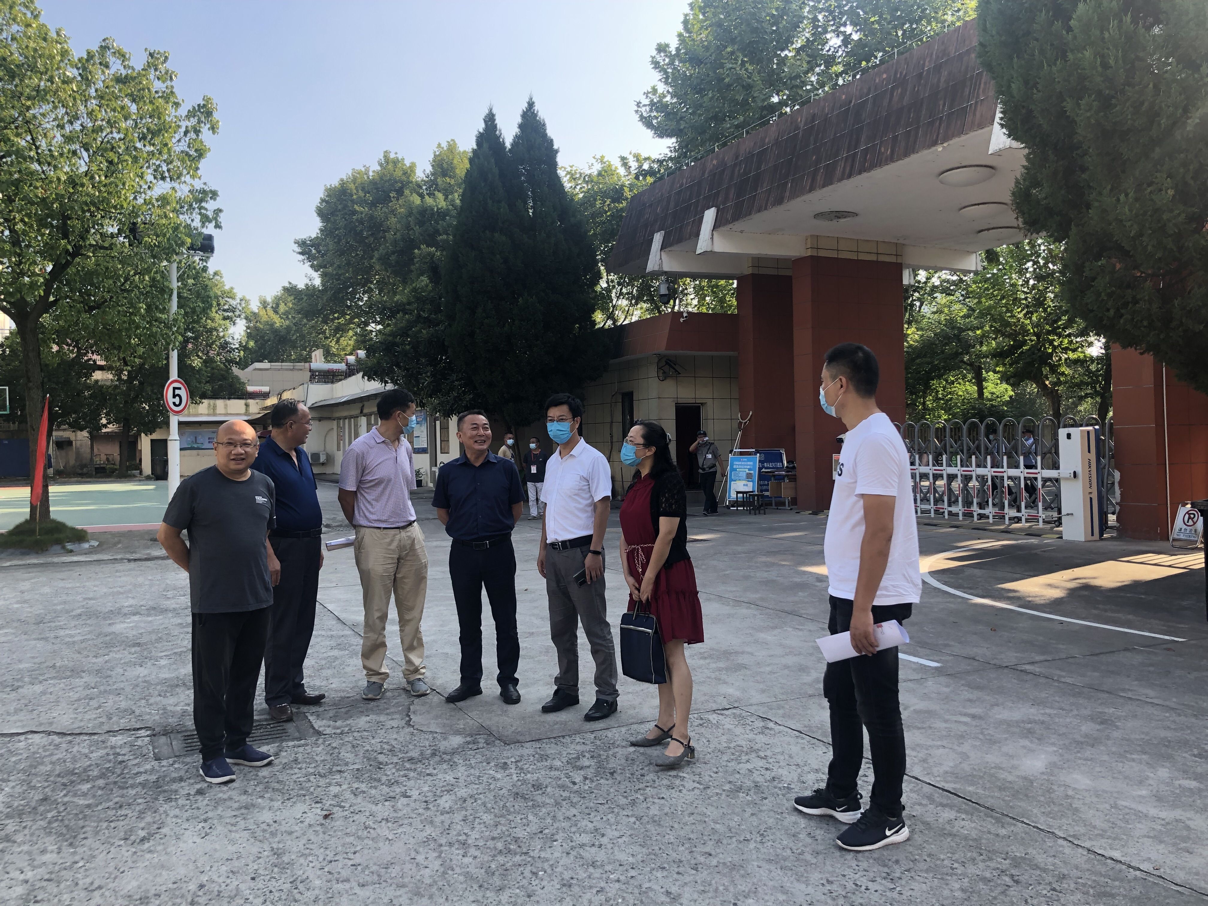9月8日下午,市教体局文明城市创建检查组来华体网页版页面登录就文明城市创建复检迎检工作进行检查和指导。校党委书记、校长曹劲松,校党委委员、副校长周光纯、许迪楼和相关部门负责人陪同检查。