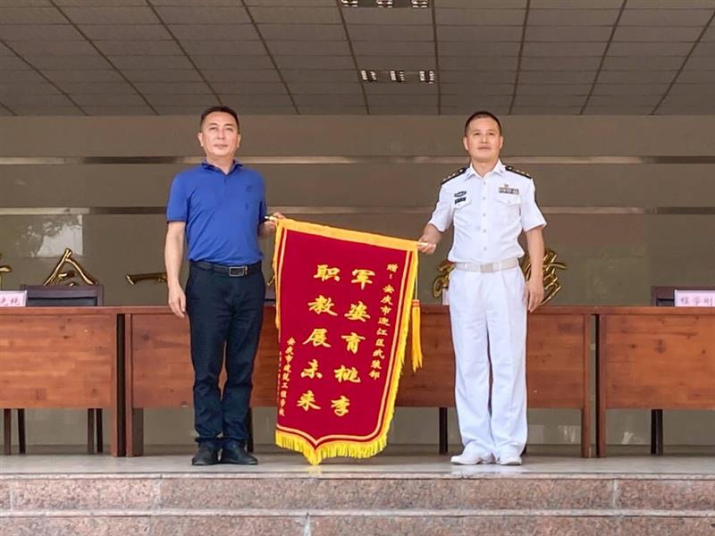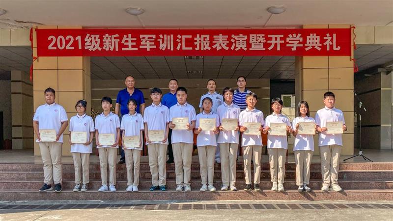 曹劲松校长代表学校和全体师生向担任此次军训工作的全体教官表示真挚的谢意,并向迎江区武装部赠送锦旗,感谢其对学校军训工作的大力支持。随后程学刚主任宣读了训练标兵名单,与会领导为训练标兵颁发荣誉证书并合影留念。