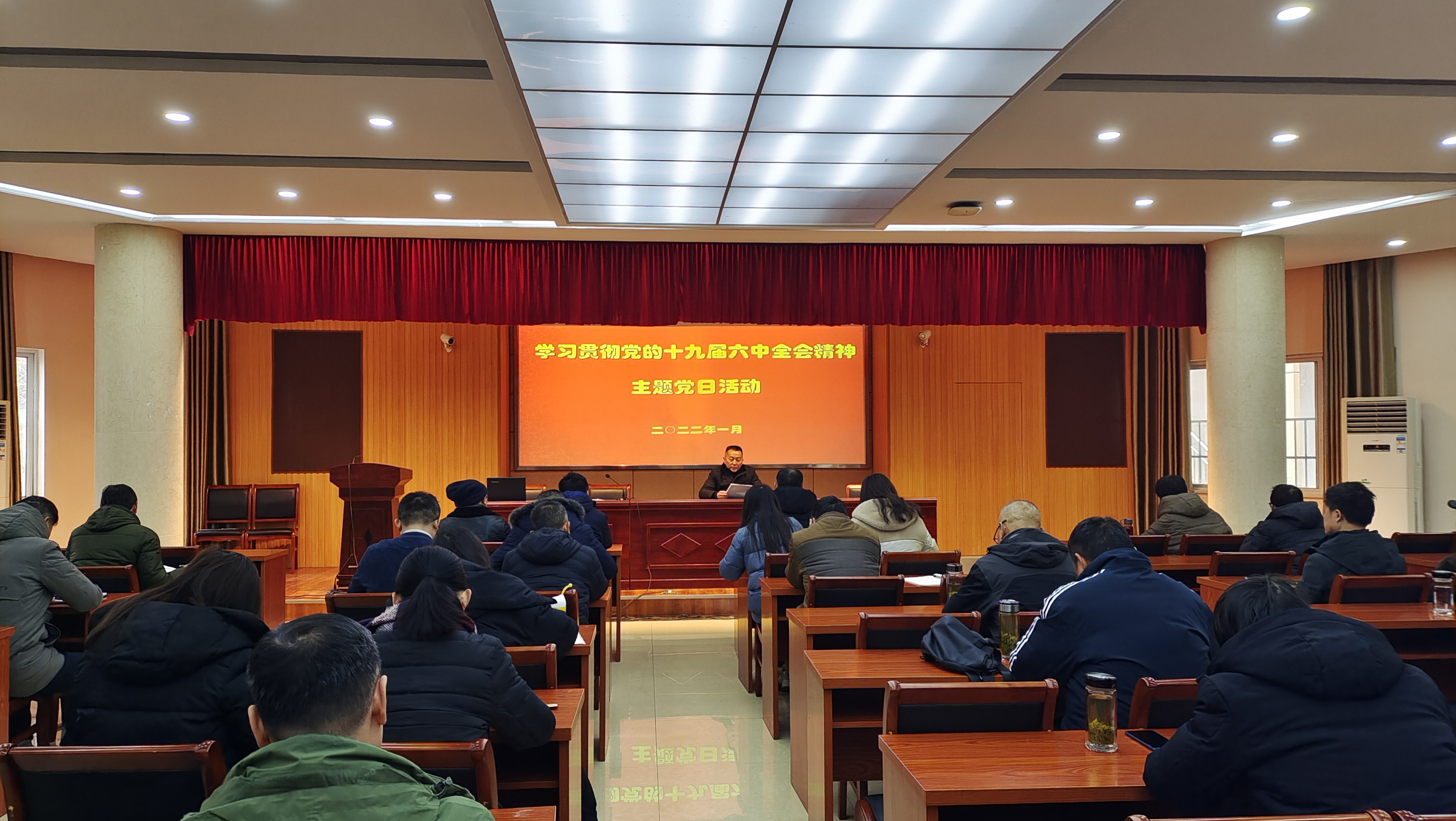 1月14日上午,华体网页版页面登录在C栋205会议室召开全体党员大会开展“学习贯彻党的十九届六中全会精神”主题党日活动。校党委书记、校长曹劲松参加活动并讲党课。校党委委员、副校长周光纯、许迪楼、王佩捷和全体党员参加学习。