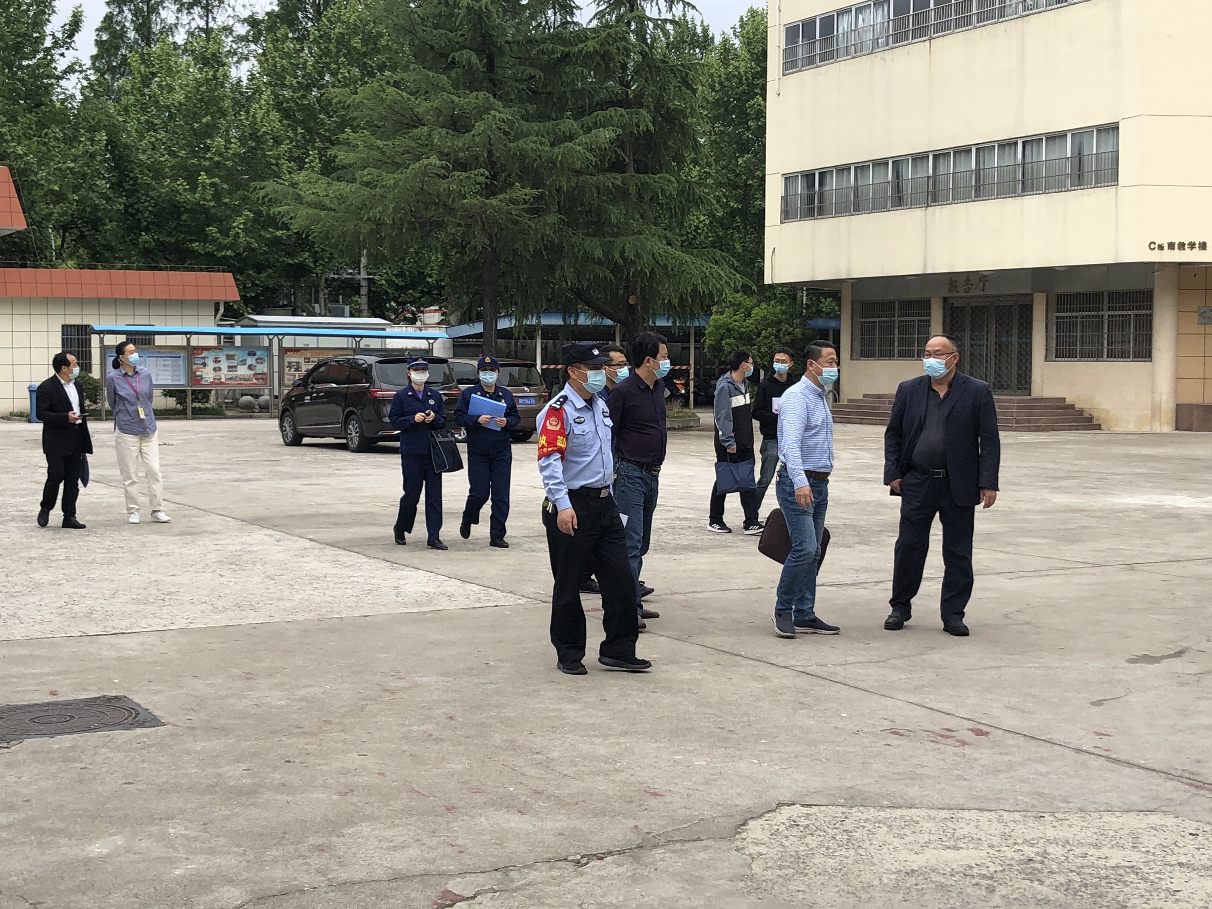 4月28日上午,由教体局牵头,公安、卫健、市场、城管、文旅、消防等部门组成的迎江区校园安全专项督查组到华体网页版页面登录督导检查校园安全工作。校党委委员、副校长周光纯和相关部门负责人陪同检查。