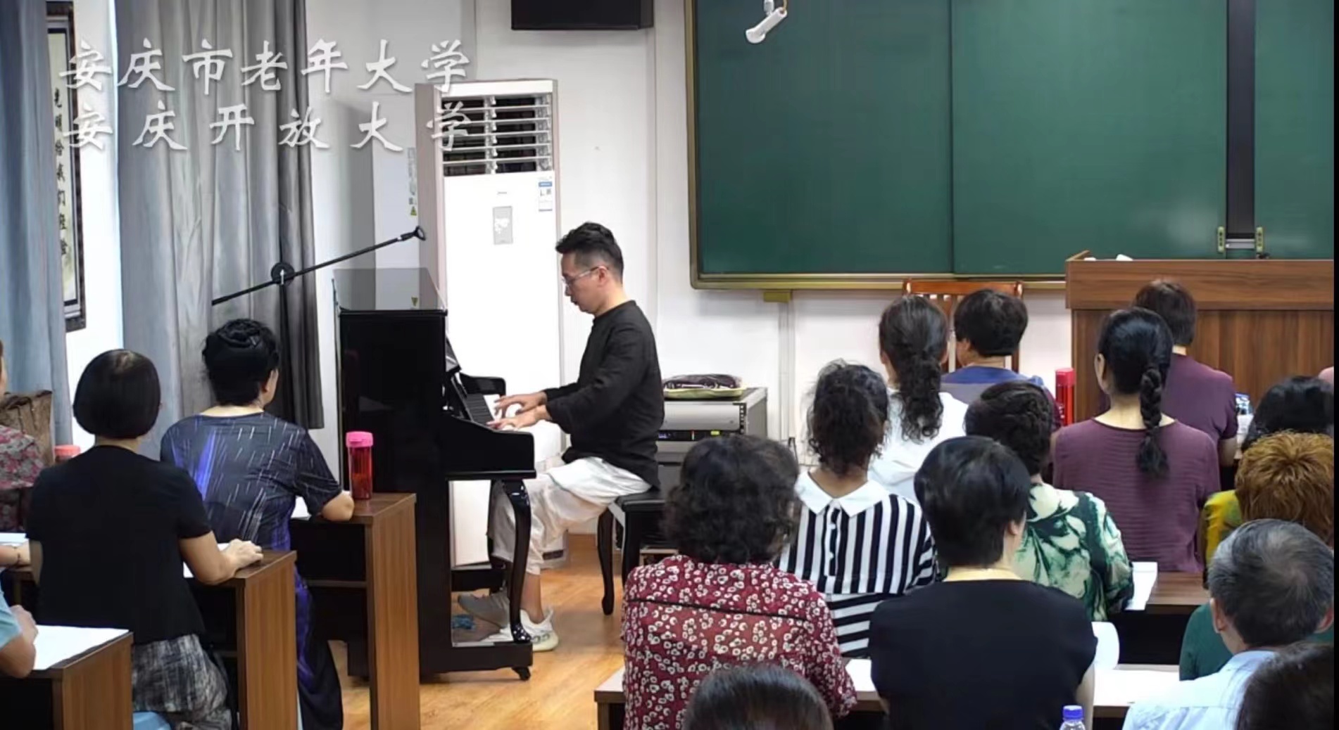 9月6日,华体网页版页面登录联合安庆市老年大学举办了秋季声乐班直播课。直播现场60多名老年朋友齐聚一堂,在专业教师王峰的教授下学习声乐基础知识。