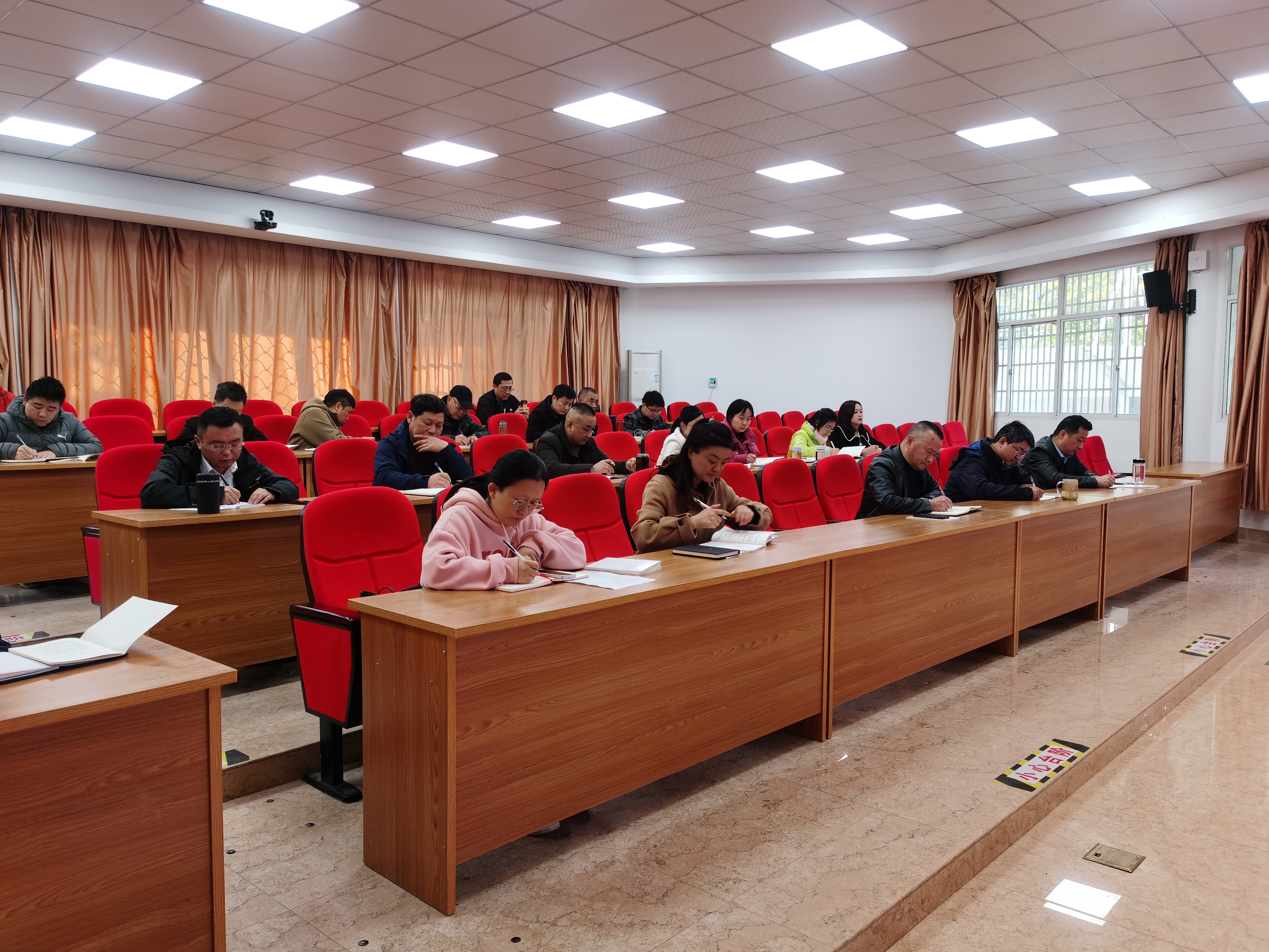 11月17日下午,学校党委理论学习中心组(扩大)在C105会议室开展主题教育集中学习(八)暨主题教育专题党课活动。校党委书记、校长曹劲松,党委委员、副校长王佩捷,党委委员、副校长王付清,各支部党员、入党积极分子和全体中层干部参加学习。