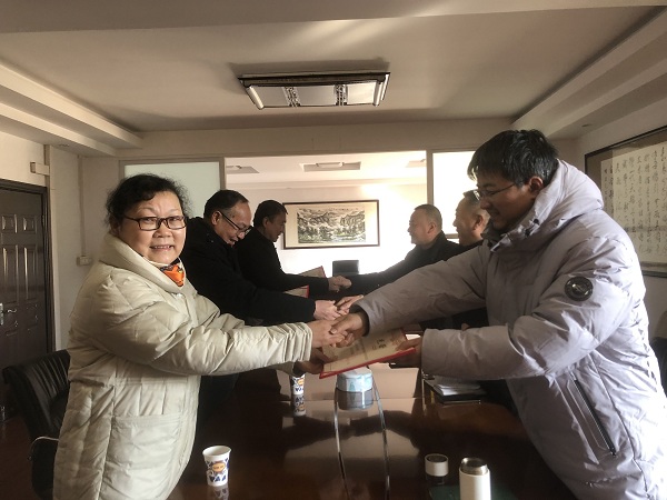 座谈会后,学校向退休教师送上纪念品。