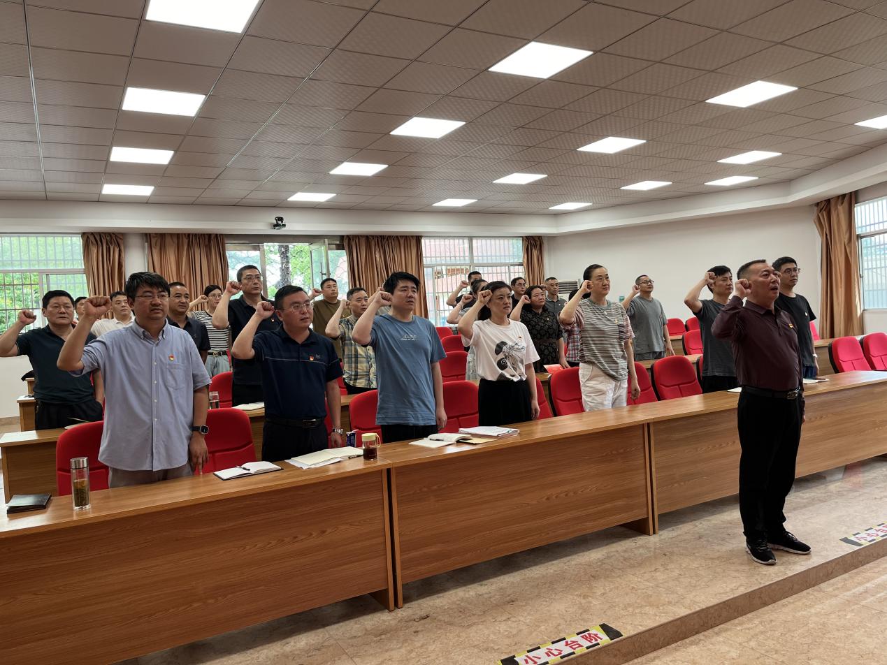 “我志愿加入中国共产党,拥护党的纲领,遵守党的章程,履行党员义务,执行党的决定……”在党的生日即将来临之际,曹劲松带领全体党员重温入党誓词,大家庄严举起右手,面对鲜红的党旗,表达了为共产主义奋斗终身的决心。一句句铿锵有力的宣誓,彰显了全体党员全心全意为人民服务的初心和对党的忠诚。