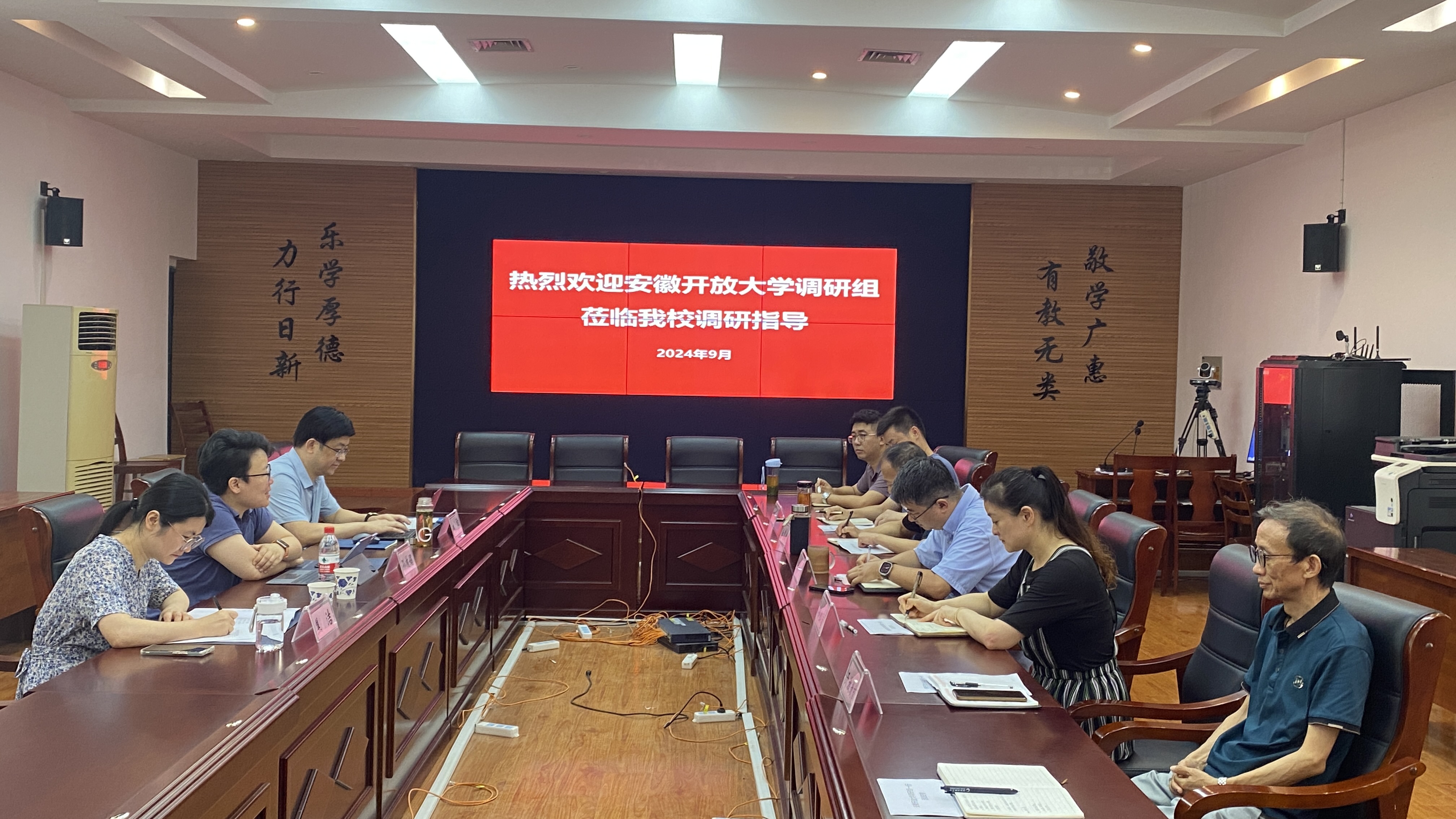 为深入学习贯彻党的二十届三中全会精神,9月5日上午,安徽开放大学党委委员、副校长孙枝娟到华体网页版页面登录宣讲党的二十届三中全会精神,并调研指导24年秋季开放教育招生、教育教学等工作。安徽开放大学教师教育学院院长赵翀、安徽开放大学招生与体系建设办公室招生管理科科长焦洁陪同调研。华体网页版页面登录党委副书记、校长王佩捷和相关部门负责人参加会议。