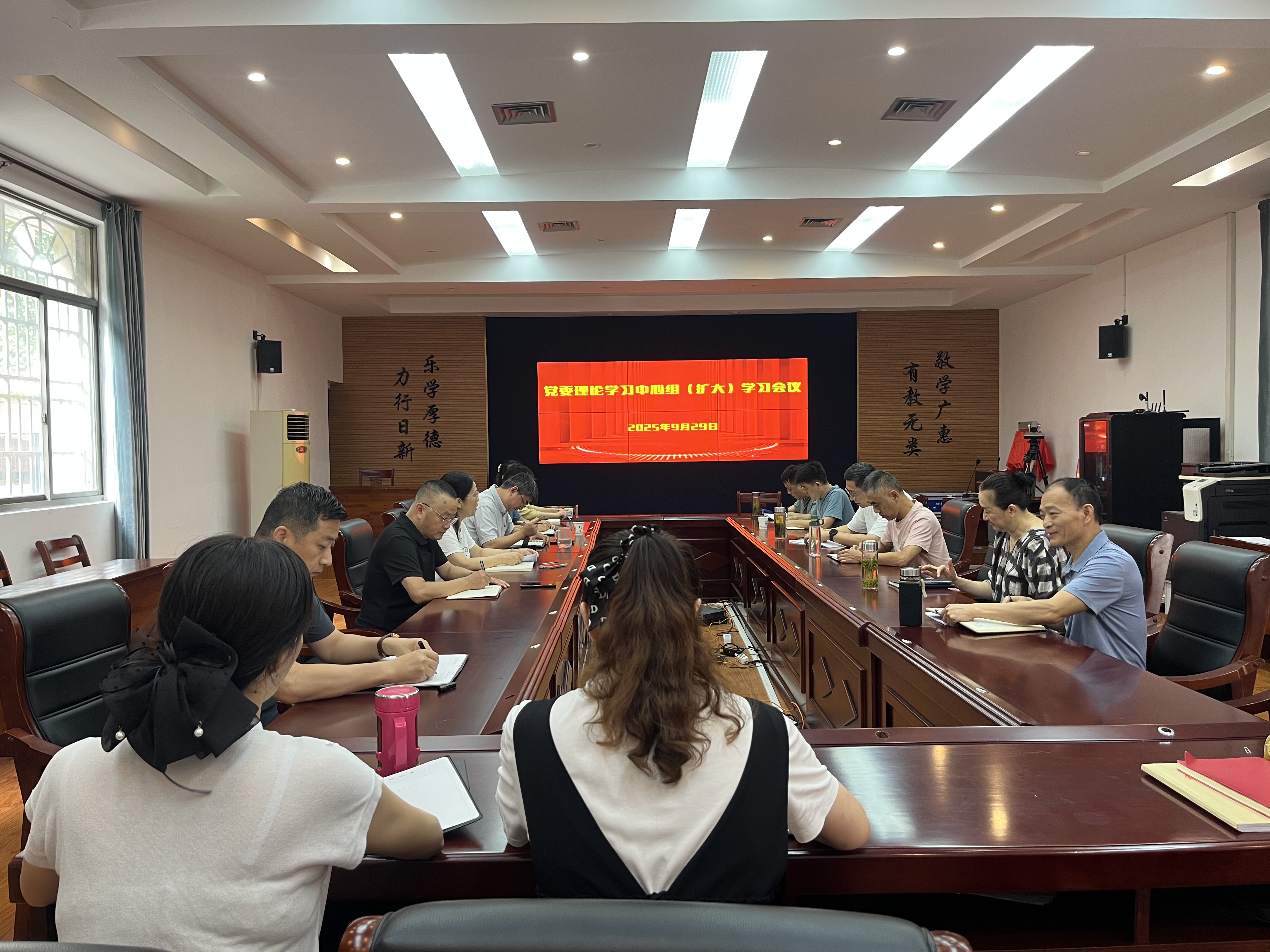 9月29日上午,华体网页版页面登录在A104召开党委理论学习中心组(扩大)会议,集体学习习近平听取新疆维吾尔自治区党委和政府工作汇报并发表的重要讲话精神、《习近平谈治国理政》第五卷以及安庆市教育局节前重点工作会议精神。党委书记陈庆玲主持会议,党委副书记、校长王佩捷,党委委员、副校长王付清及中层干部参加学习。