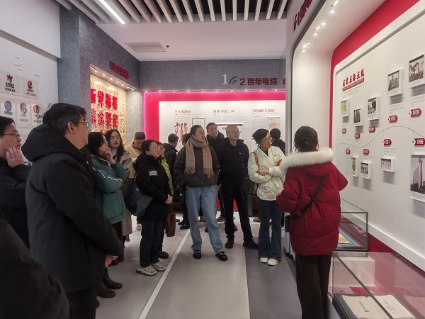 活动伊始,双方党支部成员先行参观了安庆电信党建文化展厅。在解说员的讲解中,各位党员同志认真观摩了通讯设备实物和照片、安庆云谷模型,了解到百年电信发展历程、红色电信精神、安庆电信发展史以及5G+工业互联网的孵化等。