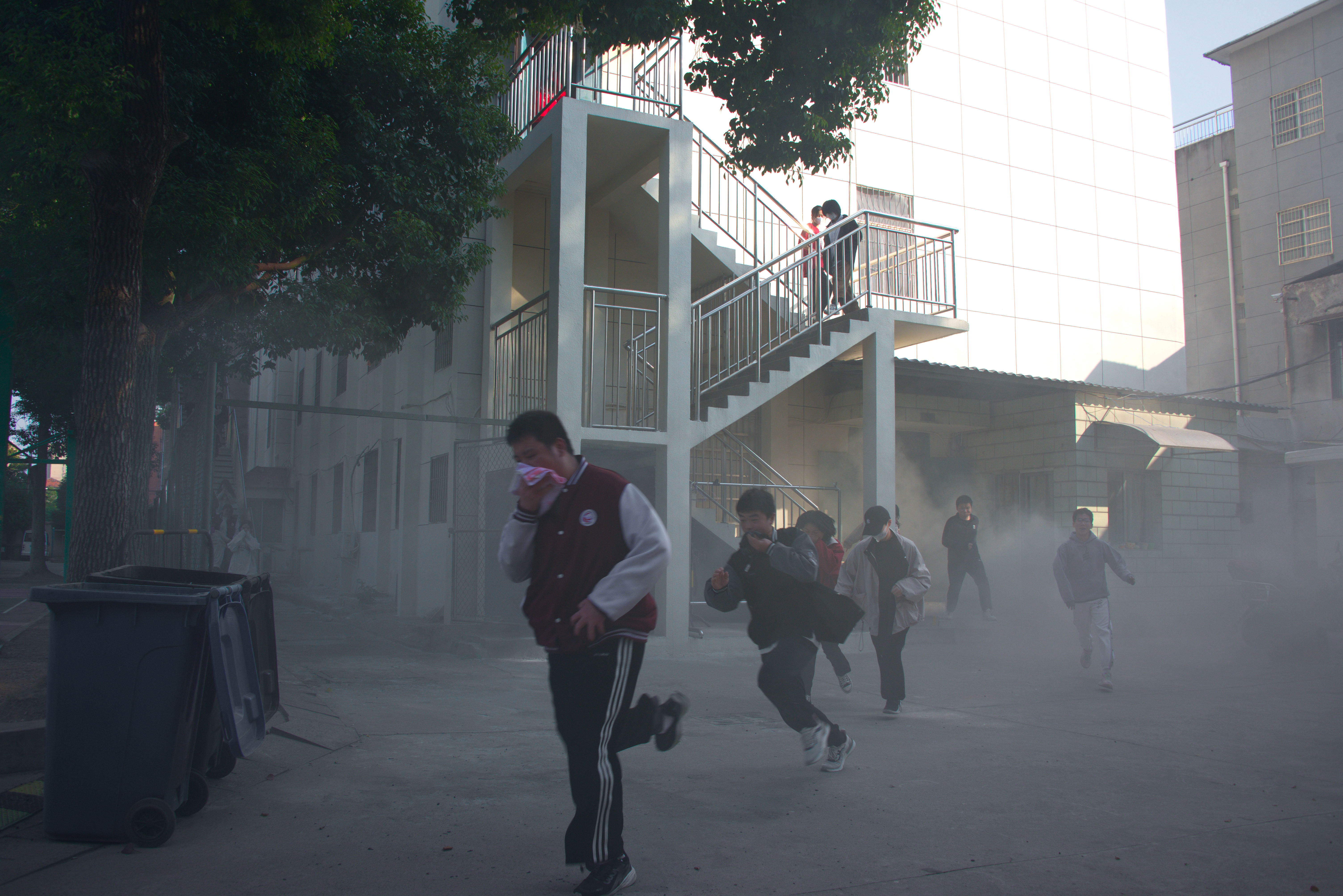 随着消防警报哨声的响起,演练正式开始。学校广播室通过广播告知师生教学楼出现火情,在班主任、楼层教师正确指导下,学生弯腰,用纸巾或手捂着鼻子,迅速有序地离开宿舍,并沿着预定的疏散路线快速有序撤离到学校操场的安全地带。经各班清点人数,全校所有住校生全部安全撤离,整个过程做到井然秩序、行动快速、配合默契。