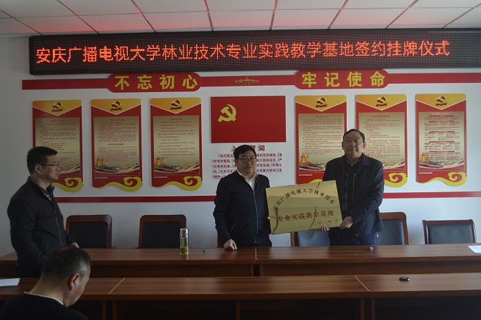 4月7日上午,风和日丽,万木葱茏,安庆广播电视大学林业技术专业实践教学基地签约暨授牌仪式在潜山市驼岭林场举行。