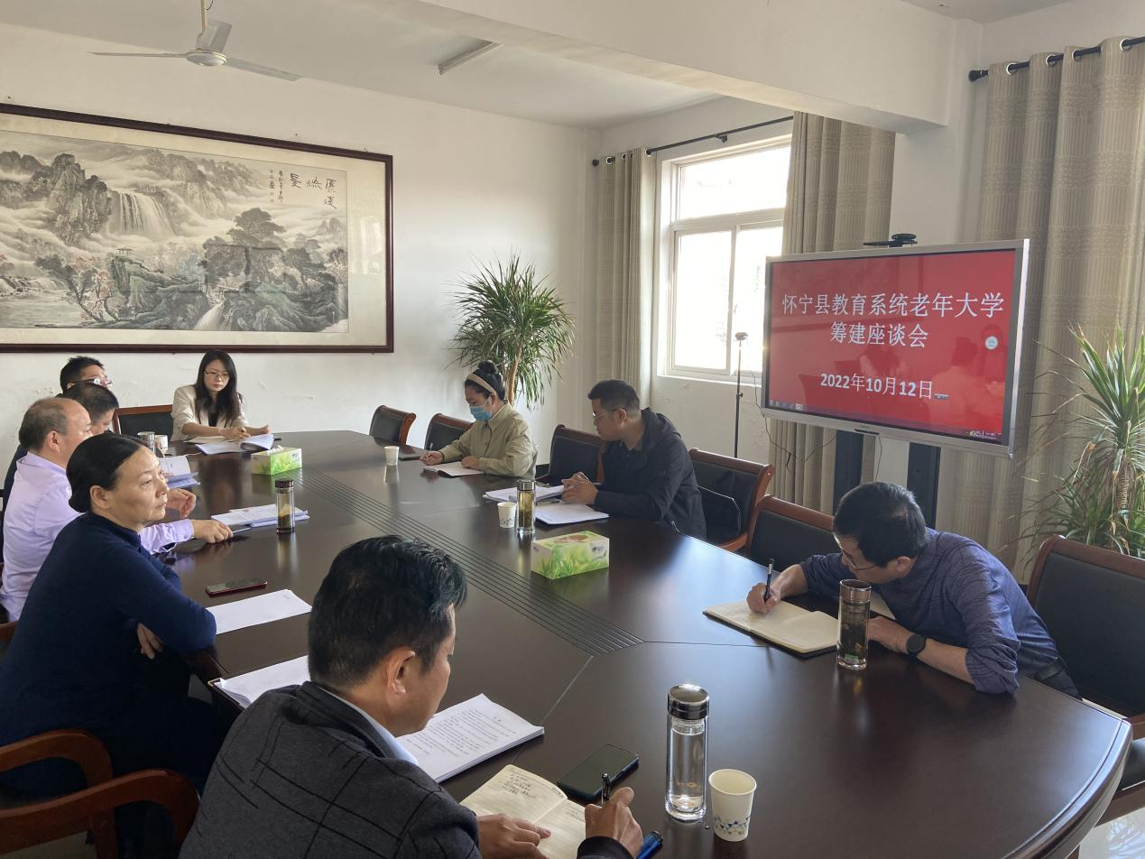 10月12日上午,怀宁县教育局在怀宁开放大学四楼会议室召开“怀宁县教育系统老年大学筹建座谈会”。县教育局党委委员戴杨春、怀宁开放大学副校长吴和晓等相关同志参加座谈。