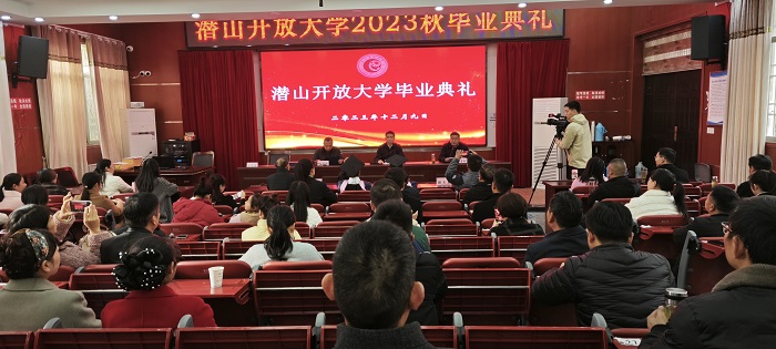 12月8日上午,潜山开放大学2023年秋毕业典礼在学校报告厅举行。潜山开放大学校长李中京出席典礼并讲话,法学本科、学前教育专科等12个专业的152名毕业生和全体教职工参加了典礼活动,典礼由副校长江善跃主持。