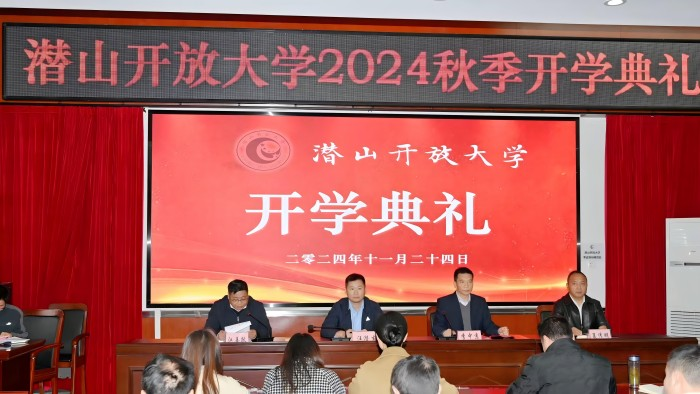 秋风为序,筑梦启航。11月24日上午,潜山开放大学隆重举行2024年秋季开学典礼暨开学第一课。校领导班子成员及全体教师与165名本、专科新生共同见证了这一神圣而难忘的时刻。潜山市教育局党委书记、局长汪潜生,潜山开放大学负责人出席活动并讲话。典礼由该校分管副校长主持。