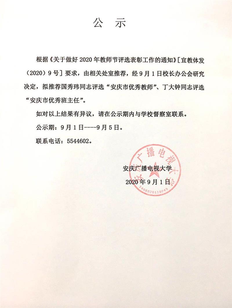 关于推荐华体网页版页面登录“安庆市优秀教师”、“安庆市优秀班主任”人选的通知