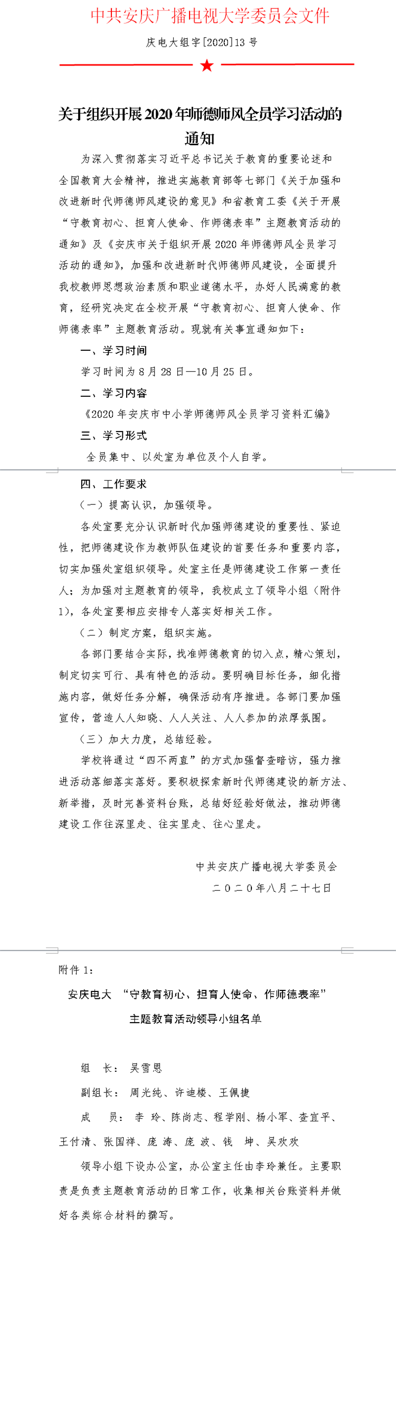 关于组织开展2020年师德师风全员学习活动的通知
