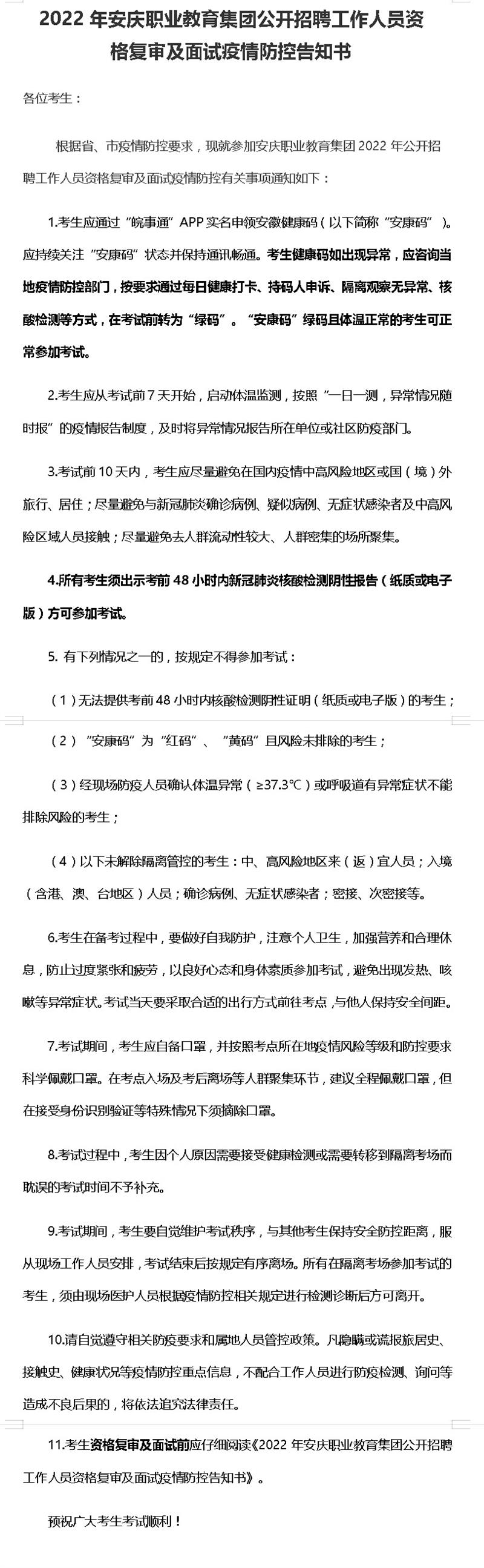 2022年安庆职业教育集团公开招聘工作人员资格复审公告
