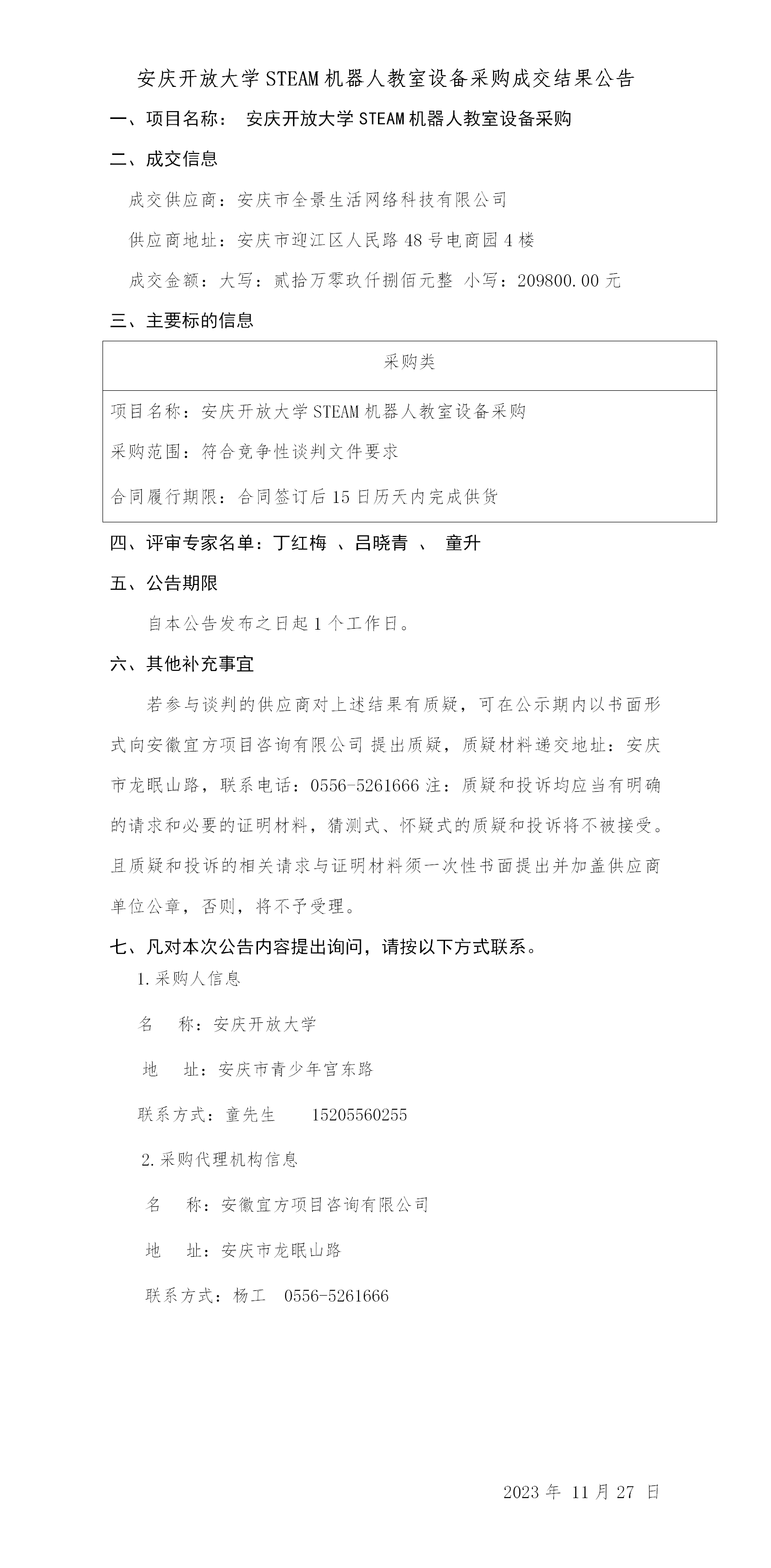 华体网页版页面登录STEAM机器人教室设备采购成交结果公告