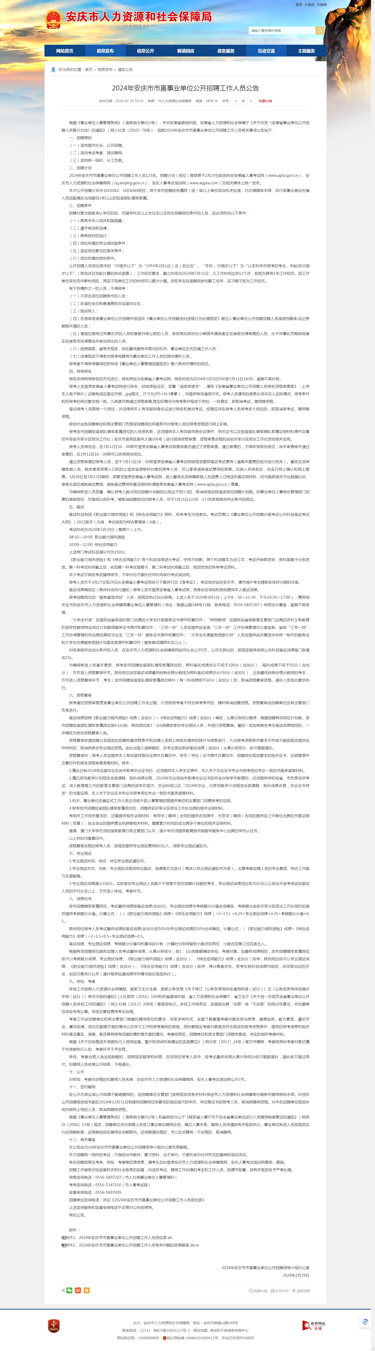2024年安庆市市直事业单位公开招聘工作人员公告