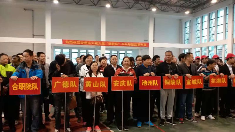 1025日至26日,安徽电大系统第六届“远教杯”乒乓球赛,此次比赛在省校合肥举行,共有19支代表队、170余名运动员参加了比赛。华体网页版页面登录乒乓球队由学校党委书记、校长吴雪恩领队加了其中教职工团体、教职工男、女单打等三个项目。
