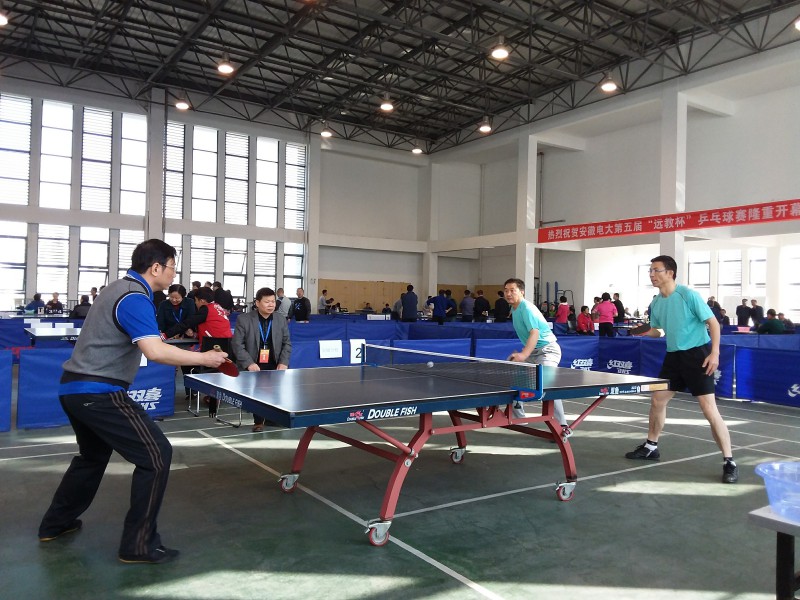 安徽电大系统第五届“远教杯”乒乓球赛于11月10日至11日在省校开赛。来自全省电大系统的19个代表队、近180名运动员参加了校长团体、教职工团体、男子单打和女子单打等四个项目的比赛。华体网页版页面登录组建了由刘剑亚、吴祚录、王友星、温保民等四人为队员的比赛队伍,工会主席庞波带队参加了比赛。