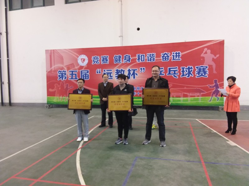 “远教杯”乒乓球比赛近年来已成安徽电大系统传统赛事,每两年一届。参赛运动员在两天的时间里,切磋球技,交流经验,畅谈友谊,气氛热烈。华体网页版页面登录运动员在本次比赛上团结协作,顽强拼搏,赛出了应有的水平,表现出了良好的精神风貌,获得了组委会的肯定,王友星同志被评为优秀运动员,学校也荣获“优秀组织奖”。