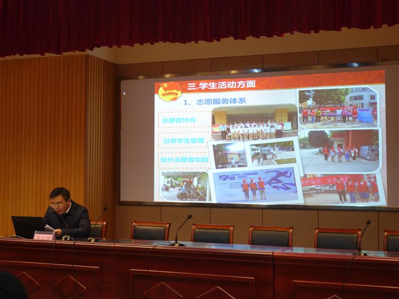 考核会上,校团委副书记吴欢欢对照《全市中学、中职共青团工作考核办法》的要求,围绕“发扬传统、加强团建、创新机制、培育特色”,汇报了华体网页版页面登录团委2017年在志愿服务体系建立、提升学生综合素质、开展学生社会实践、加强基层团组织建设和加强学生思想政治教育等方面的工作。听取工作汇报后,考核组对照工作考核表进行了支撑材料评阅、打分。