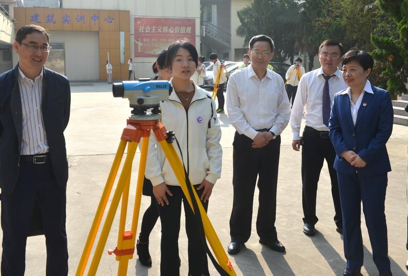 校党委书记、校长吴雪恩向张敏书记详细介绍了安庆市建筑工程学校共青团改革和基层团组织规范化建设、团的活动开展以及志愿者活动、社团的管理等情况。张敏书记还观摩了华体网页版页面登录建筑测量社团的测量训练。她走到学生中间,就社团训练和专业学习与学生进行了亲切的交流。