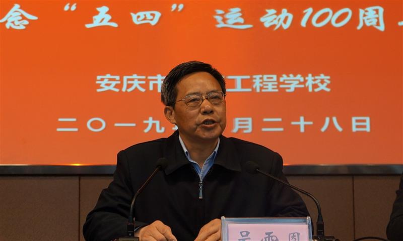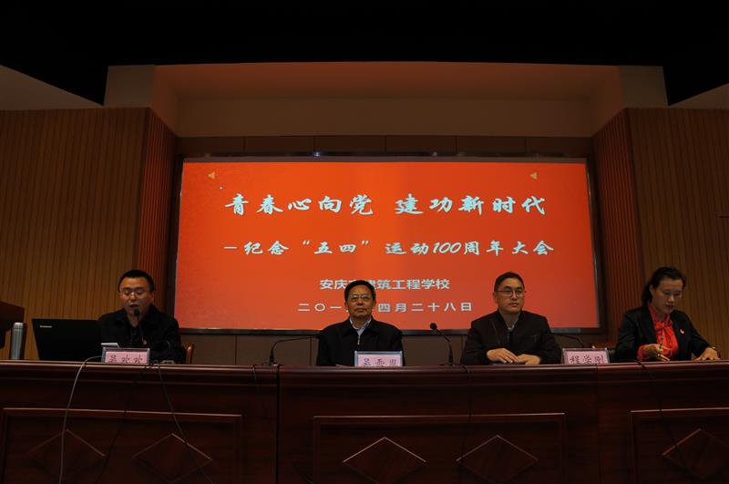 校党委书记、校长吴雪恩发表讲话,代表学校向全校团员青年致以节日问候,向受到表彰的先进个人表示热烈祝贺。吴校长向全校团员青年提出三点希望和要求:一是规范自身行为习惯,志存高远,争做时代先锋,继承和发扬“爱国、进步、民主、科学”的“五四”精神,积极投身到实现中华民族伟大复兴的中国梦之中,把自身的成长融入国家振兴、安庆崛起、学校发展中来,把炽热的青春倾注到报效祖国、奉献社会、奋发有为的具体实践中来,努力成长为爱国、爱家、爱校的新时代建校学子。二是努力学习专业技能,珍惜宝贵的青春年华,戒骄戒躁,只争朝夕,让勤奋学习成为青春飞扬的动力,让增长本领成为青春搏击的能量。三是加强品质锻造,脚踏实地做人,在困难中磨练意志力、求得真知识、增强责任感。