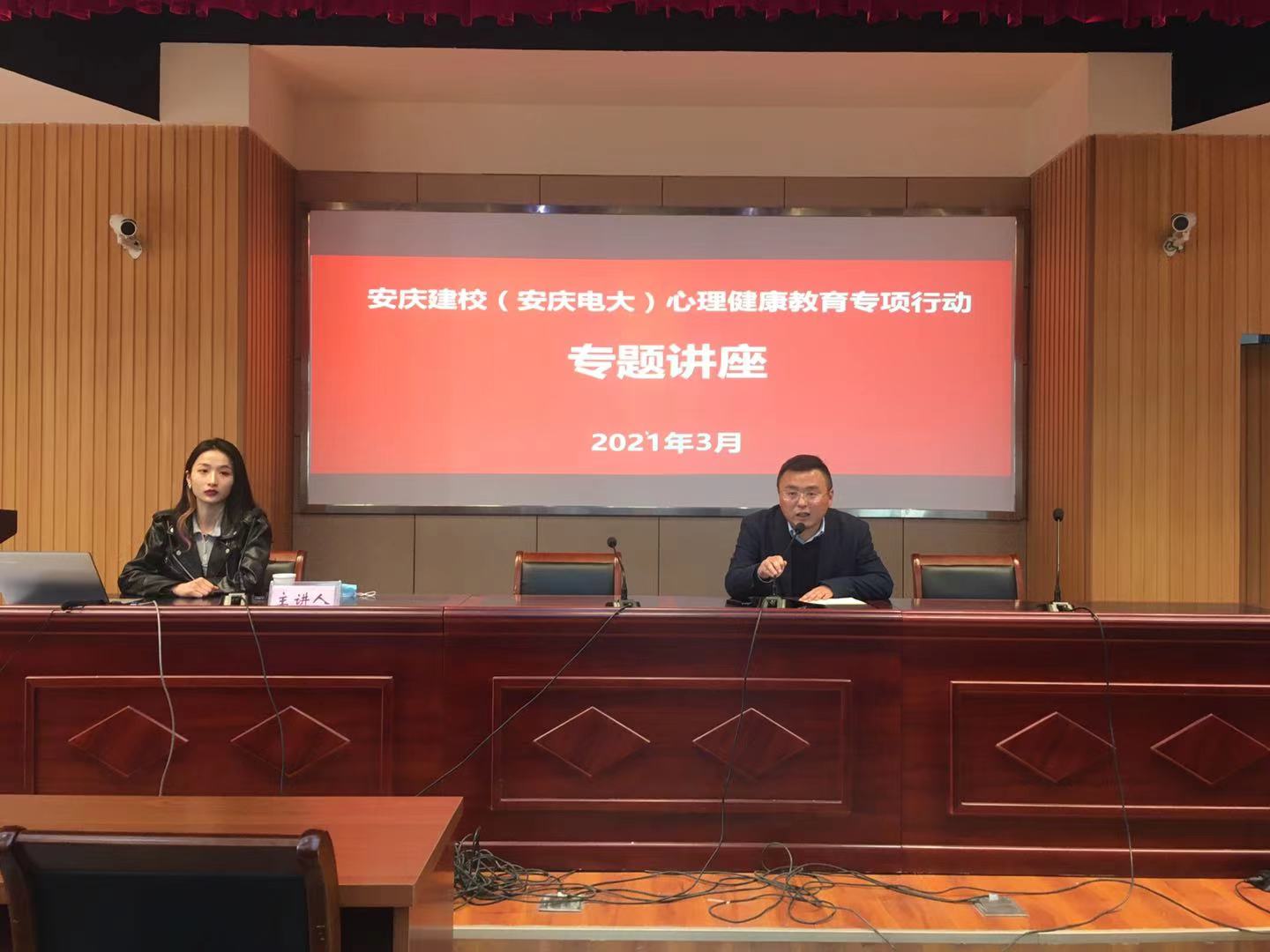 根据安庆建校心理健康教育专项行动工作安排,324日下午,校团委、行知德育工作室邀请了安庆市第六人民医院康复科吴秋乐医生在C栋会议室进行专题讲座,19级全体学生、学校兼职心理健康教师、班主任参加了本次讲座,讲座由团委书记吴欢欢主持。