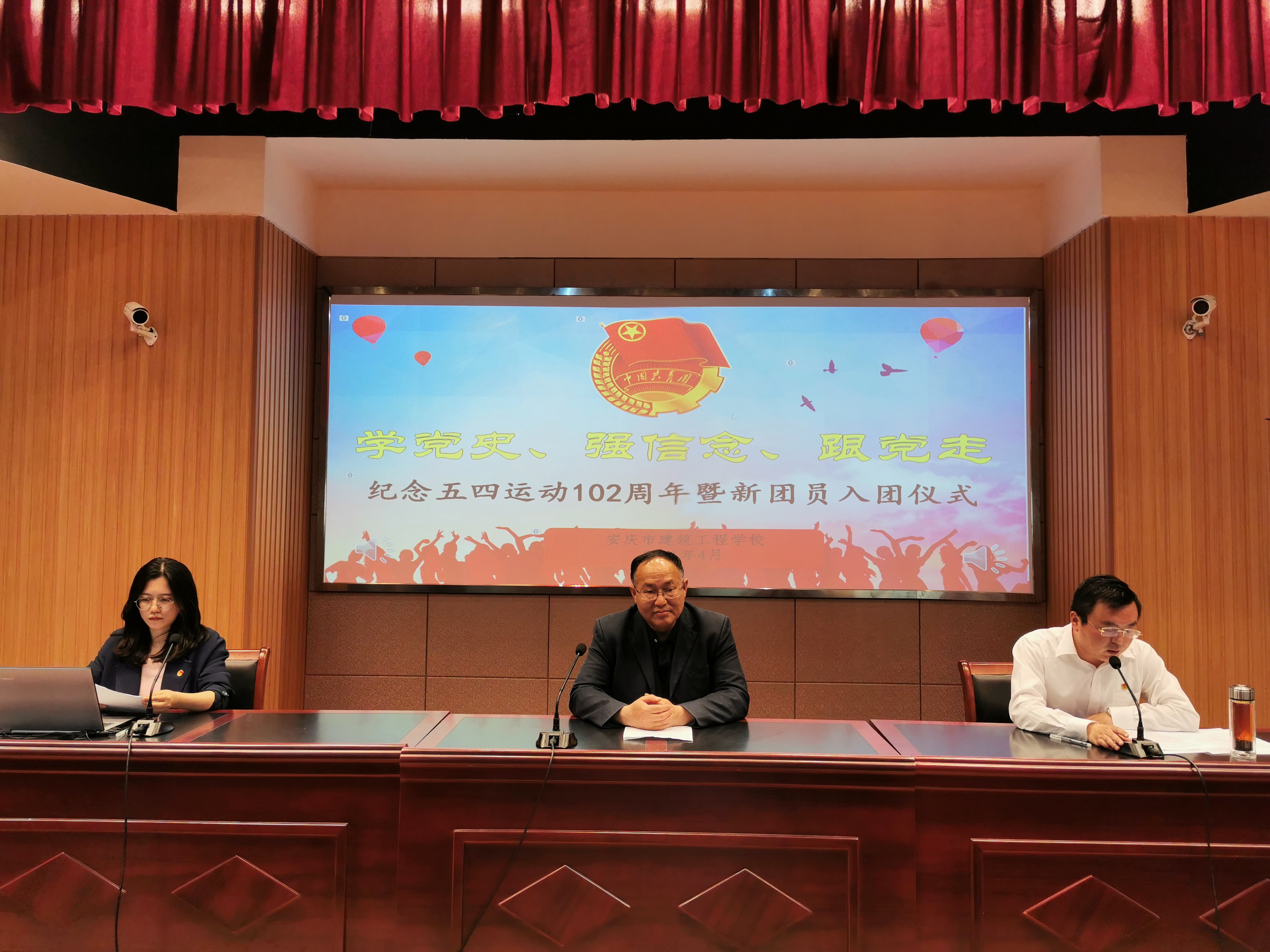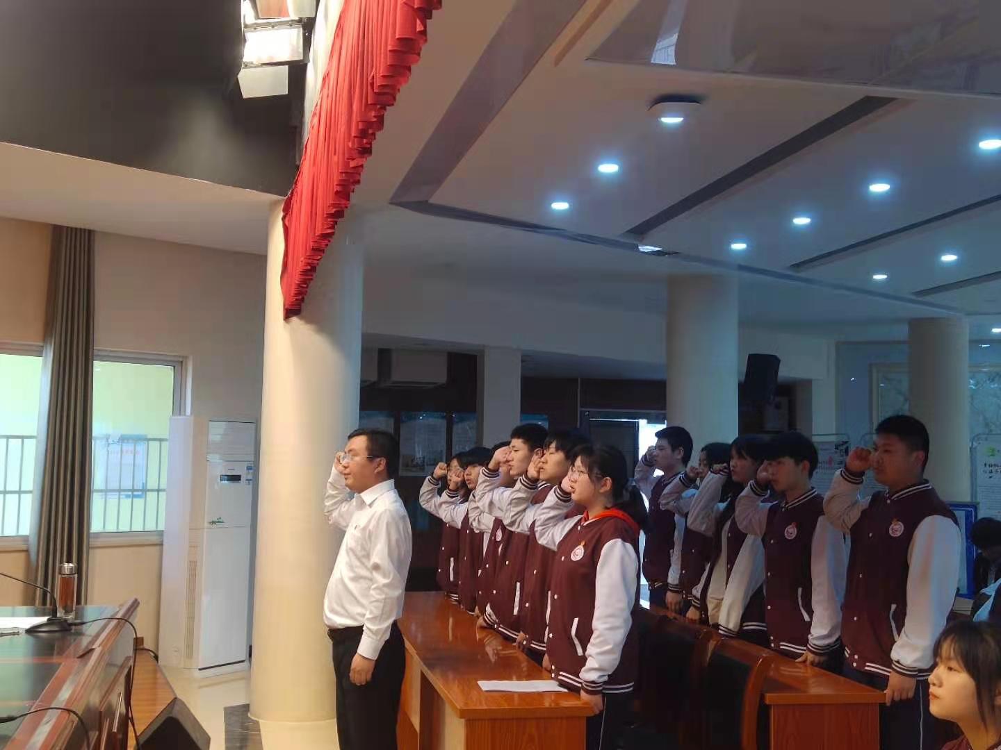 入团仪式在庄严的国歌声中拉开序幕,团委副书记张纯宣读《纪念五四运动102周年—致团员青年的一封信》及《关于批准丁奇等11名同学为共青团团员的决定》。11名新团员在团委书记吴欢欢的带领下,面对团旗,庄严誓言。