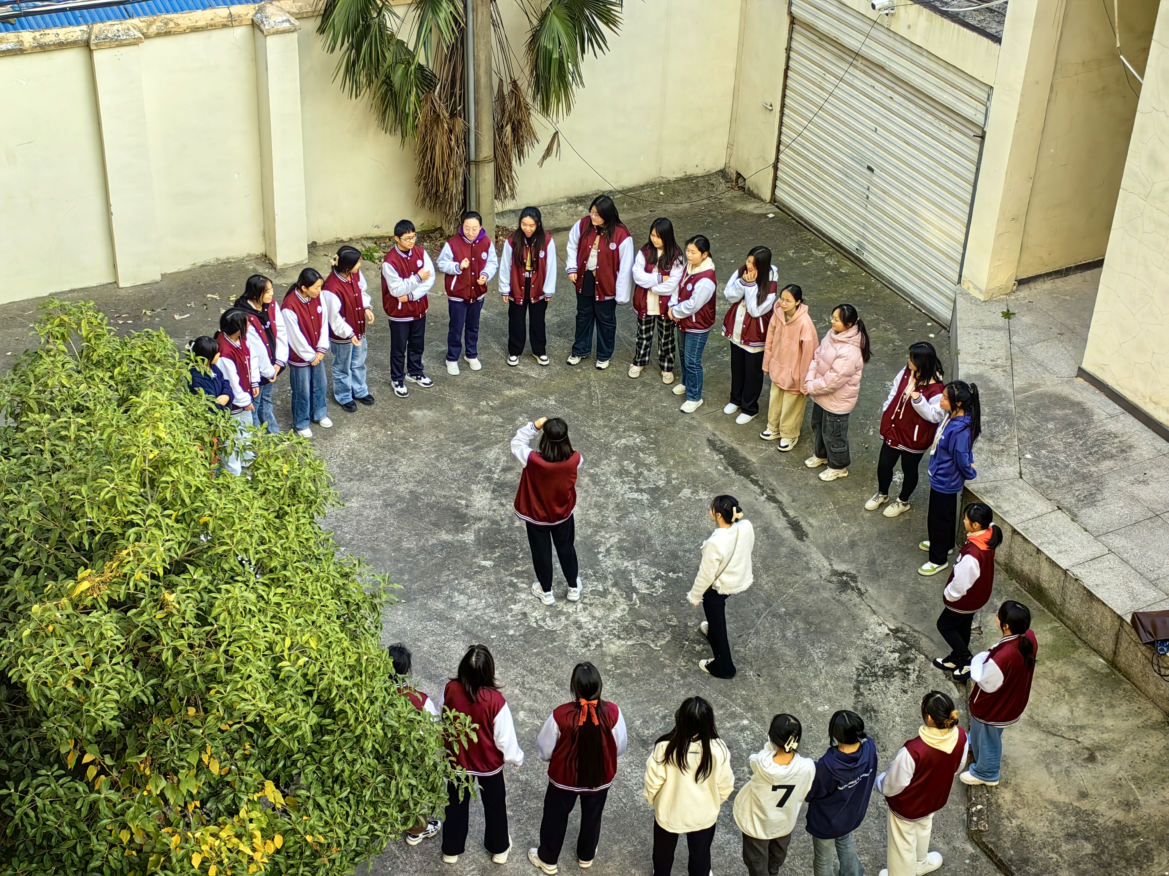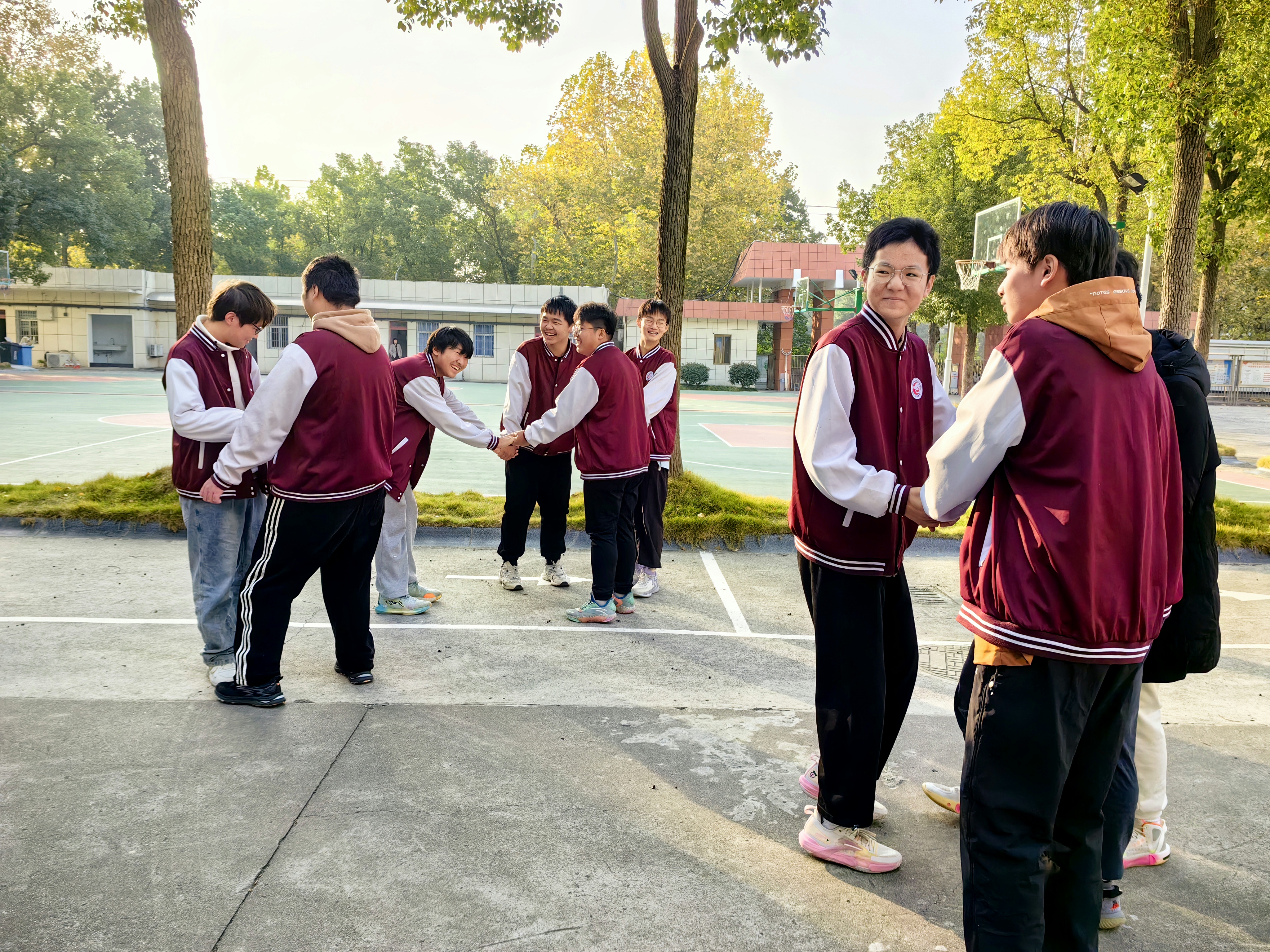 室外拓展阶段,同学们争先恐后,踊跃参与,现场气氛热烈活跃。通过“马兰花开”带领学生进一步认识和了解班级同学,学会接纳他人;“相似圈”促进班级学生间的互动与交流,形成班级凝聚力;“击鼓传花赞自己” 感受个人专注力的基础上,悦纳自我;“我为你按摩” 在放松的同时,传递彼此间的关心和温暖,增强团队凝聚力。