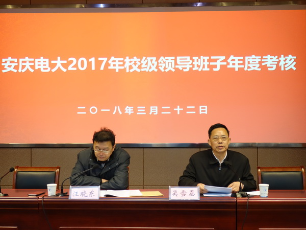 3月22日上午,市教体工委副书记汪晓东率考核组一行4人来华体网页版页面登录进行2017年度领导班子及班子成员考核。考核会由校党委书记、校长吴雪恩主持,全体教职工参加了会议。