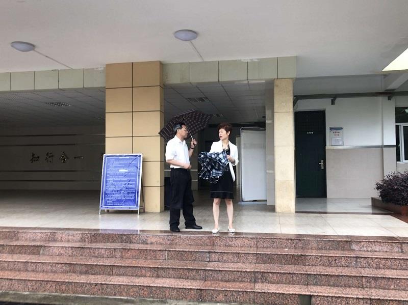 市高教工委专职副书记、教体工委副书记陈亚玲冒雨到华体网页版页面登录检查指导防汛工作