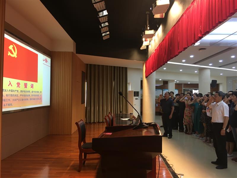 校党委委员、副校长周光纯带领全体党员重温入党誓词。随后,由校党委书记、校长吴雪恩做了近期扶贫工作情况的通报,并为全体党员讲授了主题党课。