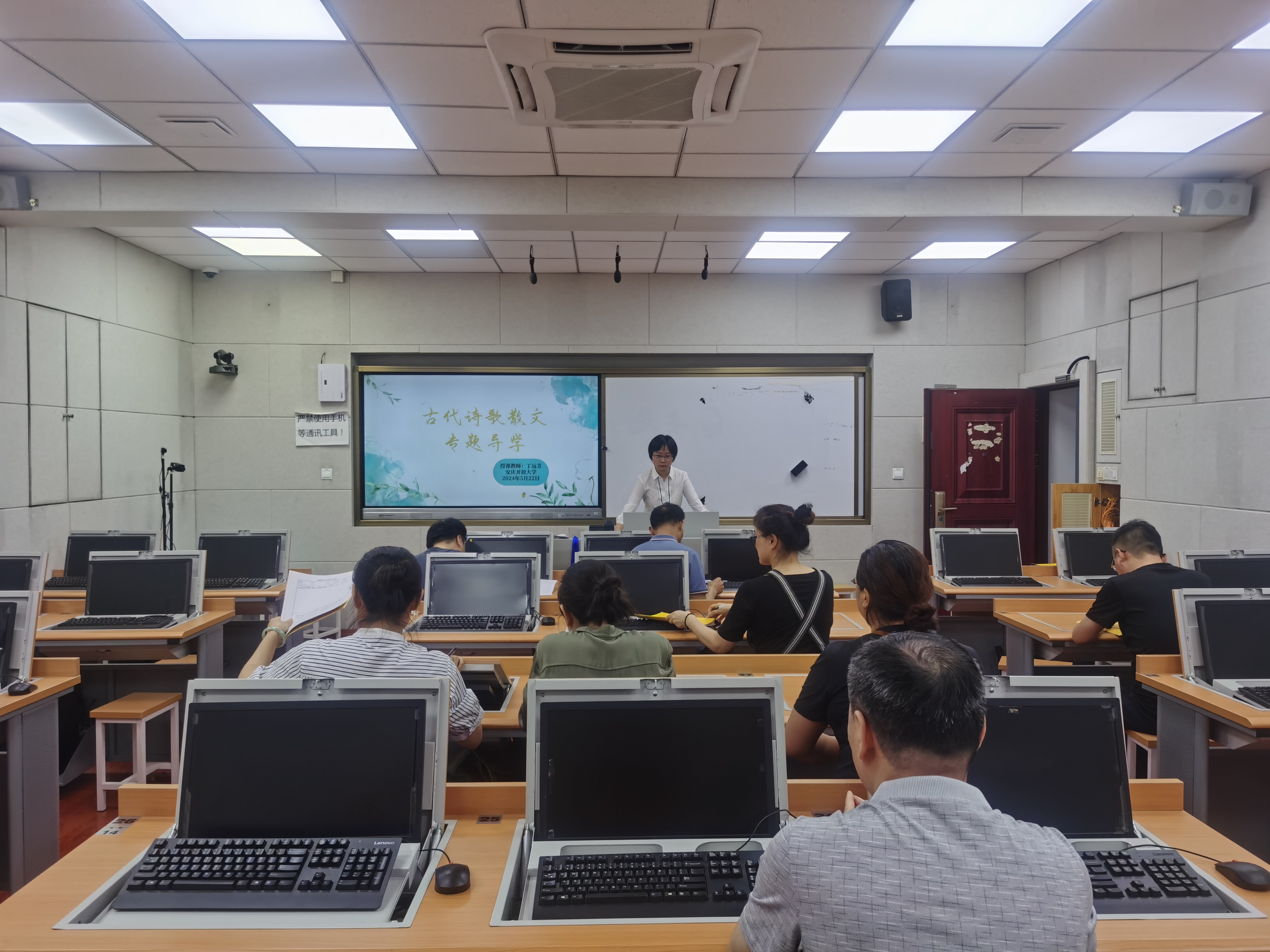 相关处室负责人和教师们集中听取了5月22日丁远芳老师的《古代诗歌散文专题》公开课、5月23日黄代高老师的《建设法规》公开课、5月28日童升老师的《工程地质》公开课,校领导和部分老师5月24日听取了李玲老师讲授的思政课《思想道德与法治》公开课。四位教师按照开放教育课程教学要求,辅以数字化资源共享和精美PPT展示,成功完成了各自的直播导学课程。