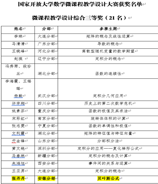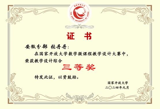 近日,国家开放大学数学微课程教学设计大赛获奖名单揭晓,华体网页版页面登录张丹丹老师的作品(贝叶斯公式)获教学设计综合三等奖,本次比赛取得的优异成绩标志着华体网页版页面登录扎实推进青年教师数字化教学能力工作取得的新成效,彰显了华体网页版页面登录对于开放教育数字化战略的高度重视与大力支持。