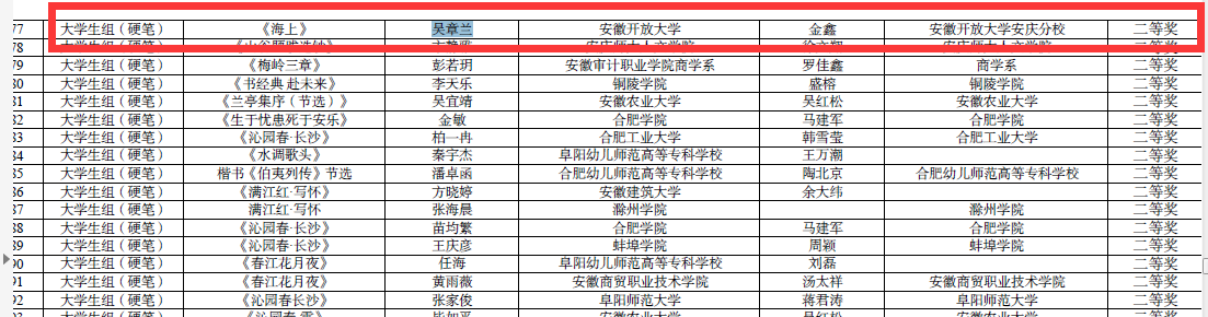 近日,安徽省教育厅官网公布了第四届中华经典诵写讲大赛安徽省预选赛获奖名单,华体网页版页面登录21春汉语言文学本科学员吴章兰厚积薄发,以其流畅自然的硬笔行书作品《海上》,获得本次大赛安徽省大学生组二等奖。