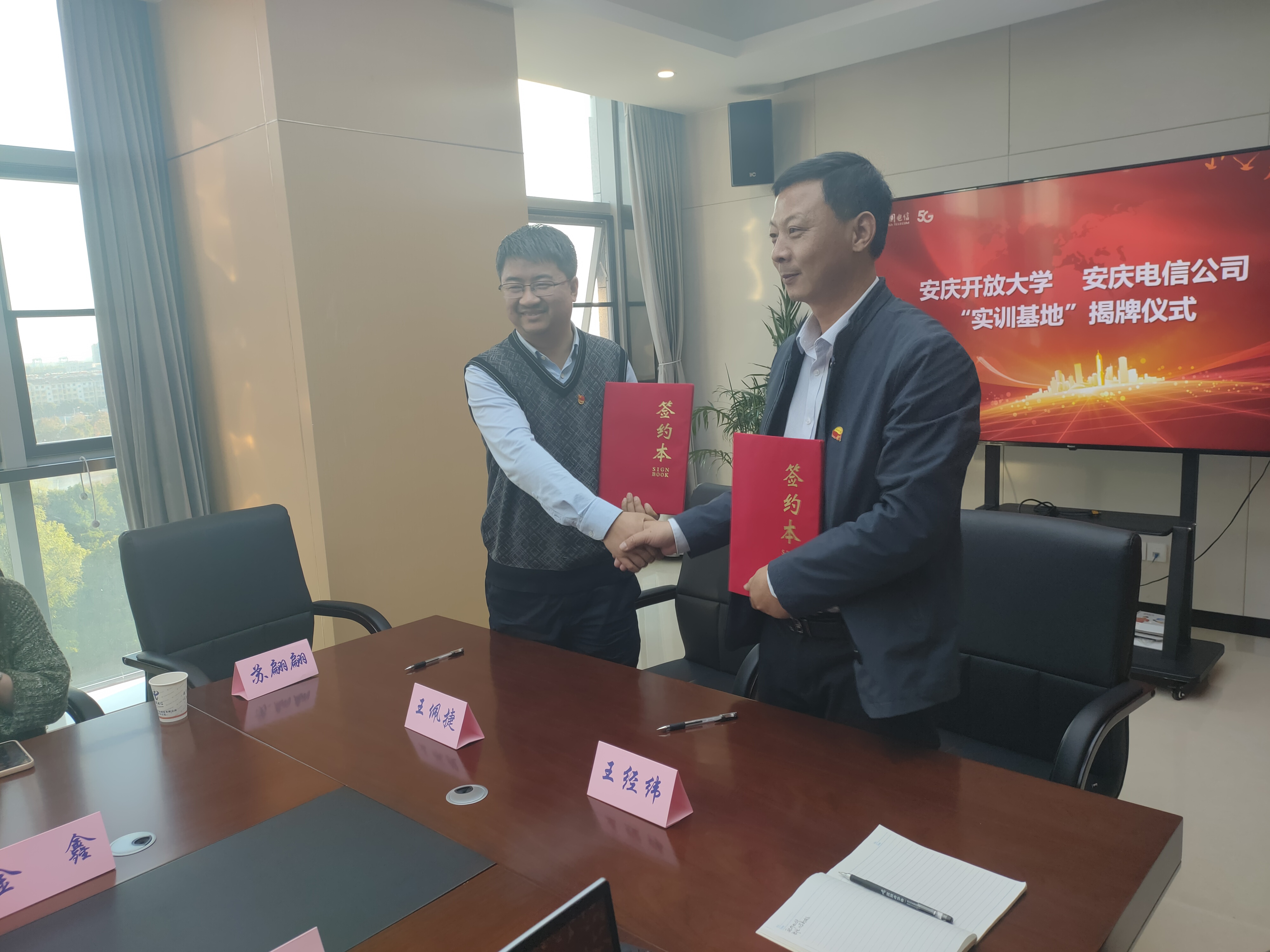 华体网页版页面登录与中国电信安庆分公司举行大数据专业实训基地签约暨揭牌仪式