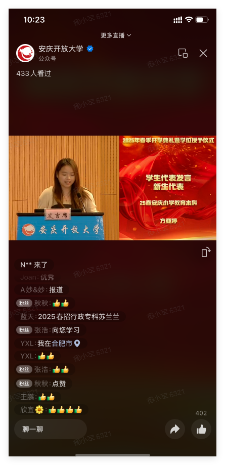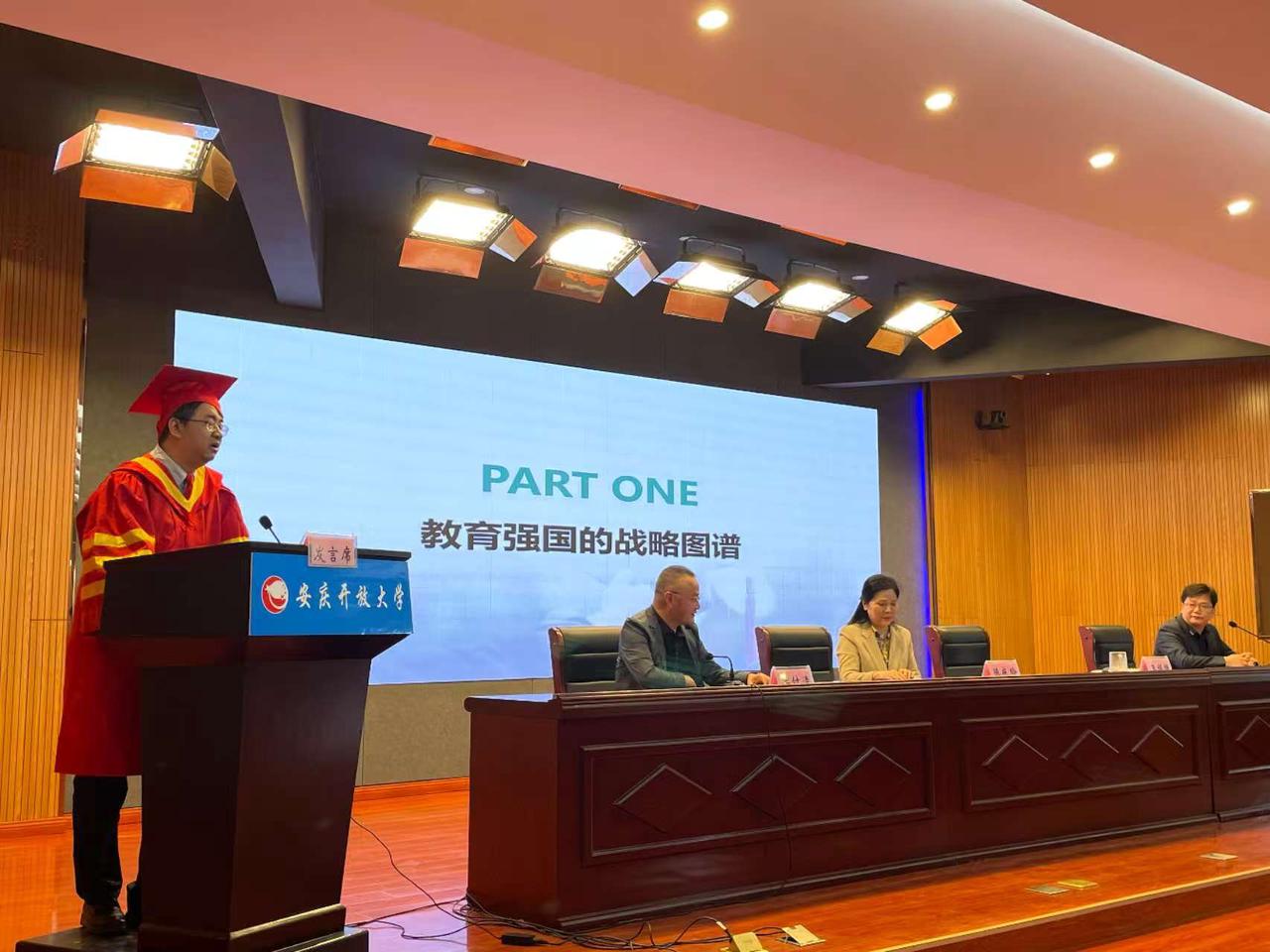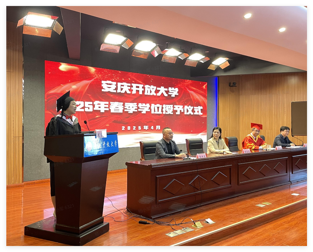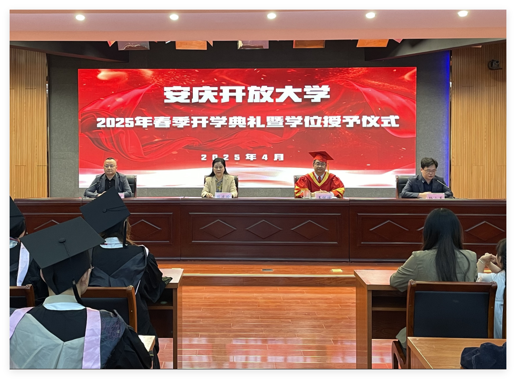 春风送暖到,正是读书时。4月26日上午,华体网页版页面登录举行了2025年春季学期开学典礼暨学位授予仪式。校党委书记陈庆玲出席仪式并讲话,校党委副书记、校长王佩捷,校党委委员、副校长王付清,校相关部门负责人及获奖学生代表、获得学位的学生代表等50余人参加了现场活动,仪式全程通过“安庆开大”微信公众号向学校及所辖六县(市)开放大学学生直播。
