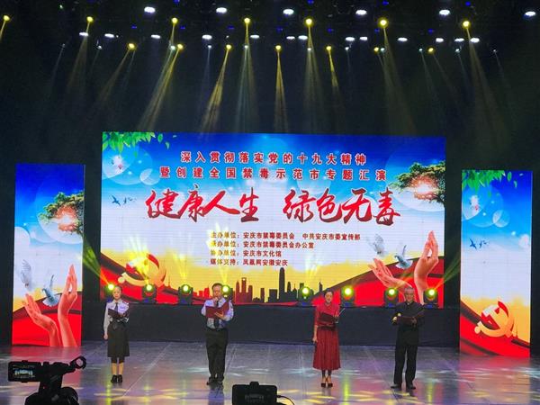文艺汇演在音舞快板《禁毒两禁谱华章》的优美旋律中拉开帷幕,紧接着朗诵、情景剧、战术表演、黄梅小戏、舞蹈歌曲等表演形式逐一呈现、精彩纷呈,安庆地域特色的黄梅戏原创小戏《小小六戒毒》将演出推向高潮,现场响起了热烈的掌声。整场演出全面展现了安庆市厉行禁毒的坚定决心,形象地诠释了“健康人生绿色无毒”的生活理念,深刻揭示了毒品对个人、家庭和社会造成的严重危害,反映了当前面临的毒情形势,真实再现了基层禁毒工作者为禁绝毒品所付出的艰辛和努力,呼吁广大人民群众远离毒品、珍爱生命,号召社会各界人士共同参与禁毒,构建和谐社会。