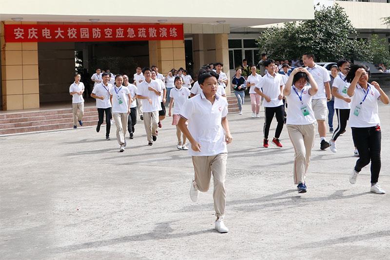 为确保演练活动安全有序的进行,华体网页版页面登录制定了《安庆电大校园防空应急疏散演练规程》,校党委委员、副校长周光纯担任本次演练总指挥,现场指挥由职成处负责人程学刚担任。914日、917日副校长周光纯和职成处负责人程学刚分别召开了专门的会议,进行培训和部署,确保演练活动安全有序开展。九月十八日,以安庆市的防空警报为信号,华体网页版页面登录防空应急疏散演练活动正式开始。