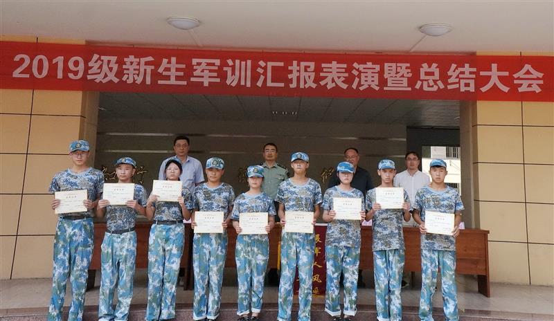 96日下午,2019级新生军训汇报表演暨总结大会在校操场顺利举行。校党委委员、副校长周光纯,迎江区武装部政工科科长刘小磊、职成处主任程学刚、保卫处主任庞涛以及各班班主任等参加大会。大会由职成处主任程学刚主持。
