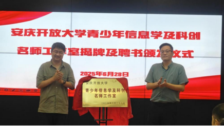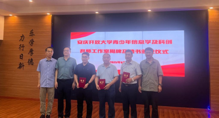 2025 年 6 月 28 日上午,安庆教育界迎来了一件具有里程碑意义的大事,华体网页版页面登录青少年信息学及科创名师工作室正式揭牌成立。揭牌仪式上相关主管部门、安庆市计算机学会、安庆师范大学、安庆职业技术学院、安徽省计算机学会青少年教育专委会等众多信息科创教育领域专家学者及安庆市中小学信息学一线名师代表参加。安庆师范大学科研处处长、安庆市计算机学会理事长刘奎、华体网页版页面登录党委副书记、校长王佩捷为工作室揭牌,安庆市互联网行业党建指导员、安庆市计算机学会副理事长开俊参会并致辞。仪式由华体网页版页面登录党委委员、副校长王付清主持。