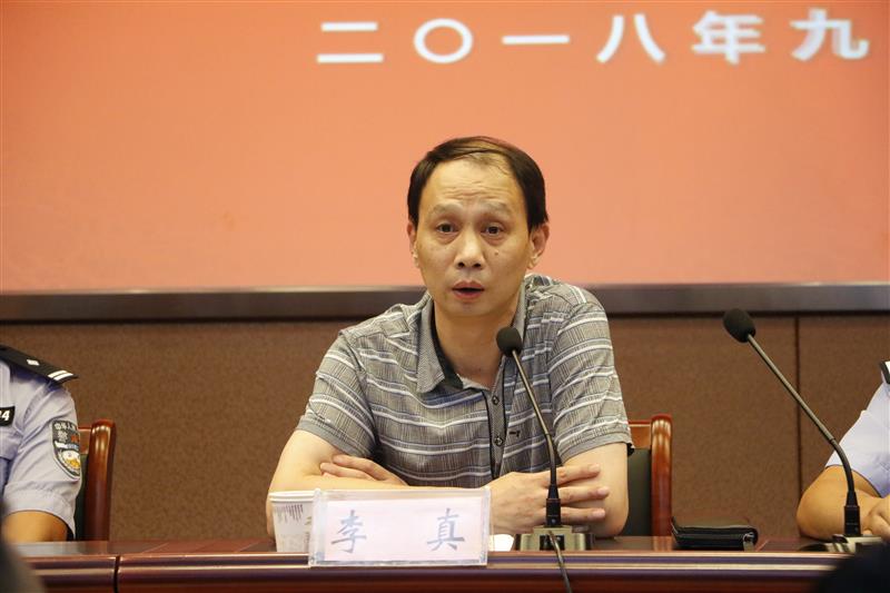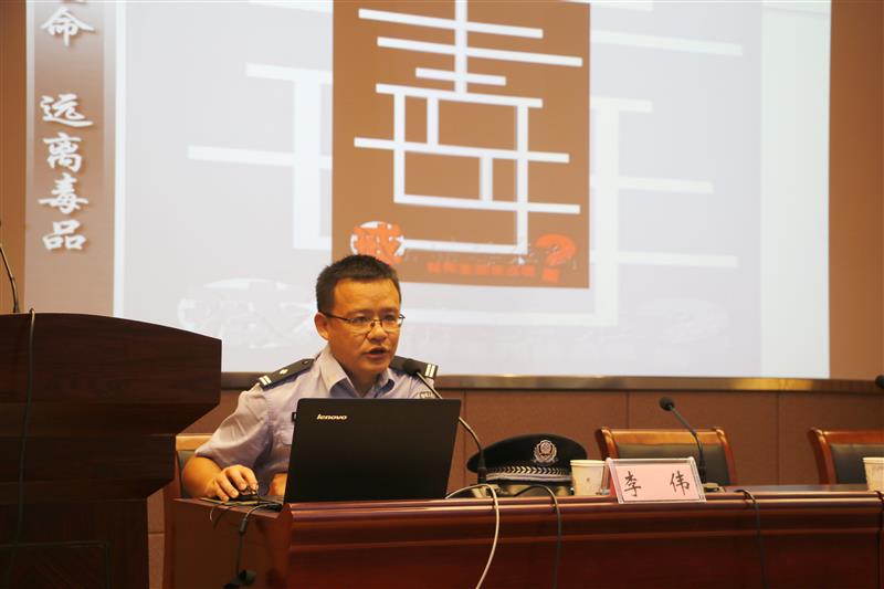 市禁毒办副主任、市公安局禁毒支队政委李真出席禁毒教育报告会并讲话,华中路派出所教导员姚其义、迎江区刑警大队李伟出席会议。报告会由副校长周光纯主持。