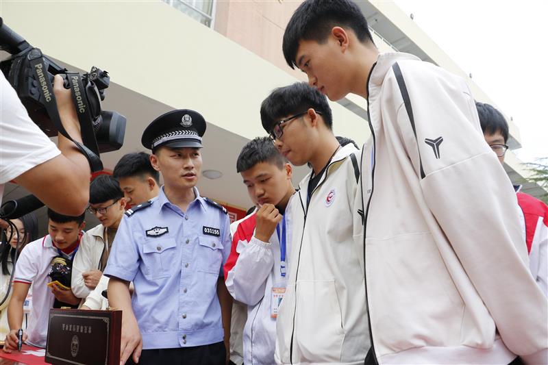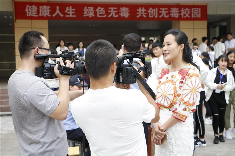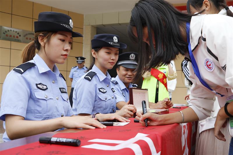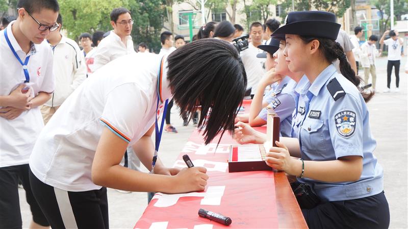 报告会结束后,组织学生参观了禁毒教育展板,华中路派出所民警和禁毒社工为学生发放了禁毒宣传材料,对相关法律问题进行了解答。大量鲜活的事例和触目惊心的图片影像资料生动形象的展示了毒品的种类,吸食毒品的诱因,毒品对身体、家庭、社会、国家的危害以及防范毒品的方法,参观学生在禁毒宣传条幅上签名,市电视台记者到现场进行了采访。