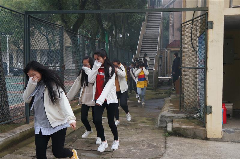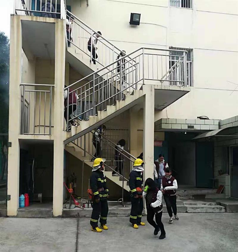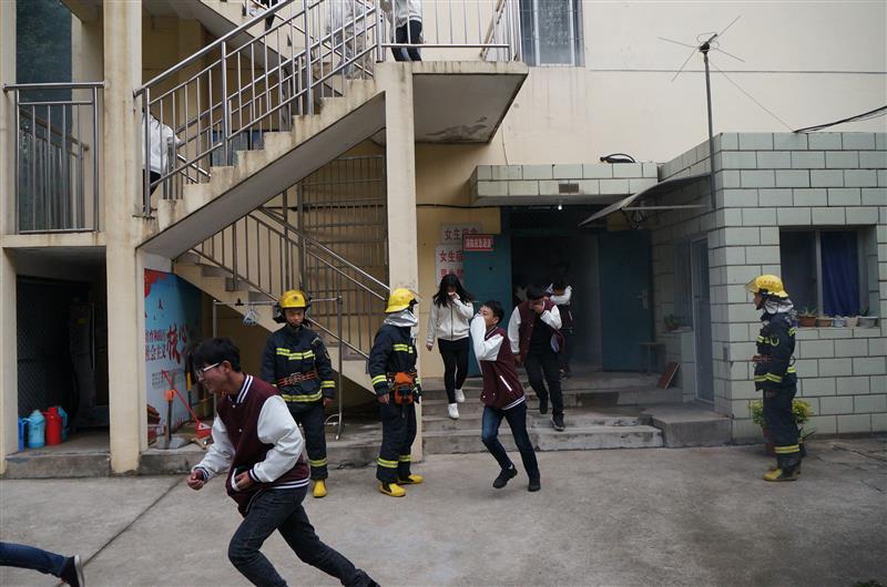 报告会后,举行了学生公寓火灾疏散演练。随着火情警报声,一场学生公寓安全疏散演习在学生公寓展开,300余名师生参加了演习。